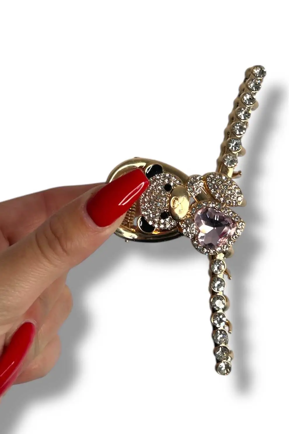 Altın Renk Kelebek Figürlü Taş Ve İnci Detaylı Metal Mandal Toka