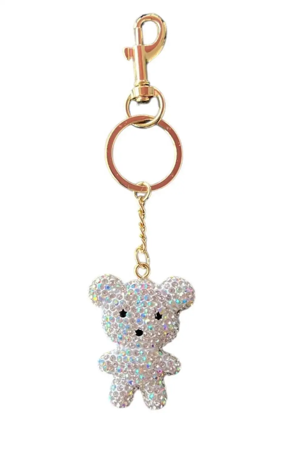 Altın Renk Ayıcık Figürlü Gümüş Renk Taş Detaylı Çanta Charm/ Anahtarlık