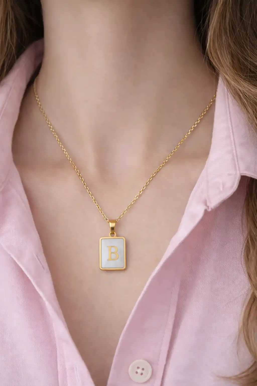 Altın Renk B Harf Çelik Kolye