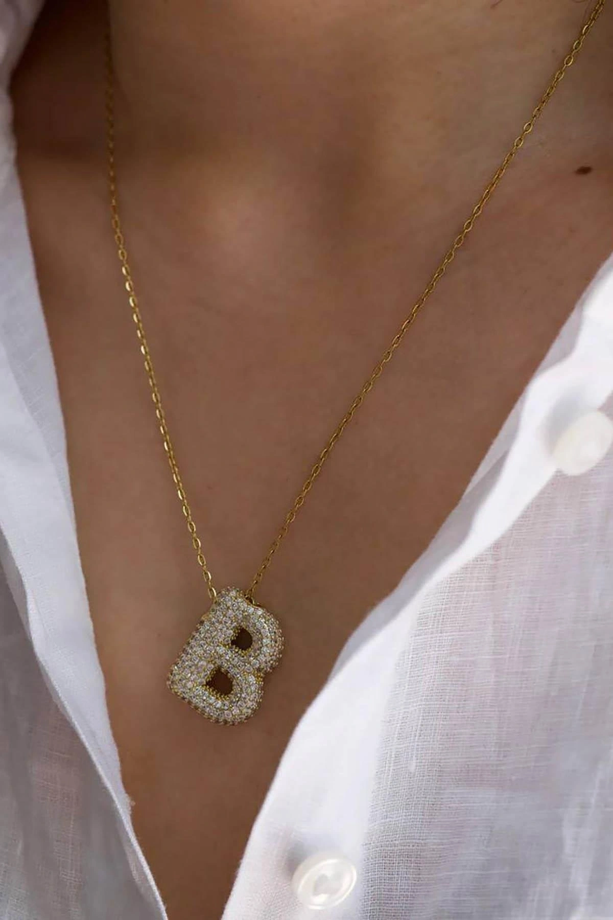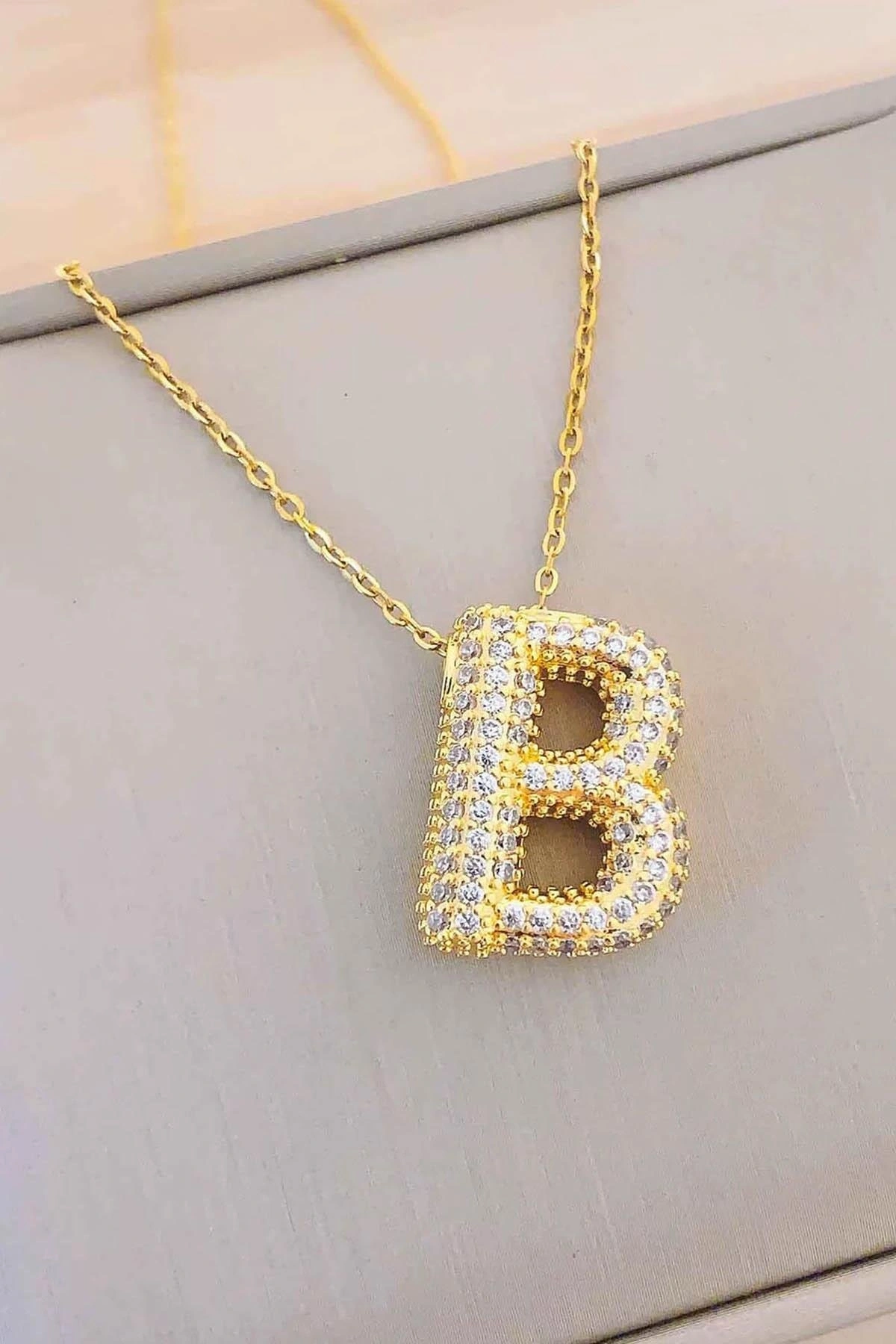 Altın Renk B Harf Taş Detaylı Çelik Kolye