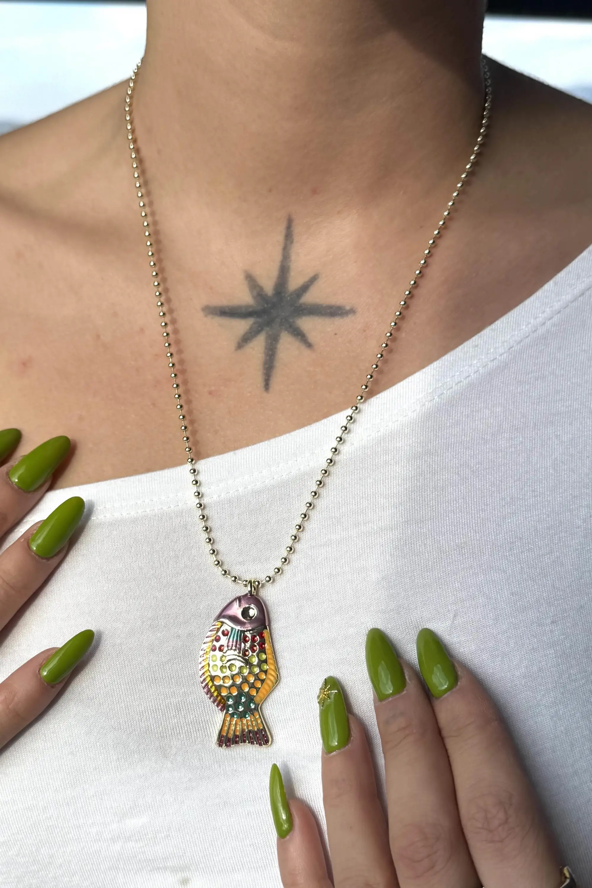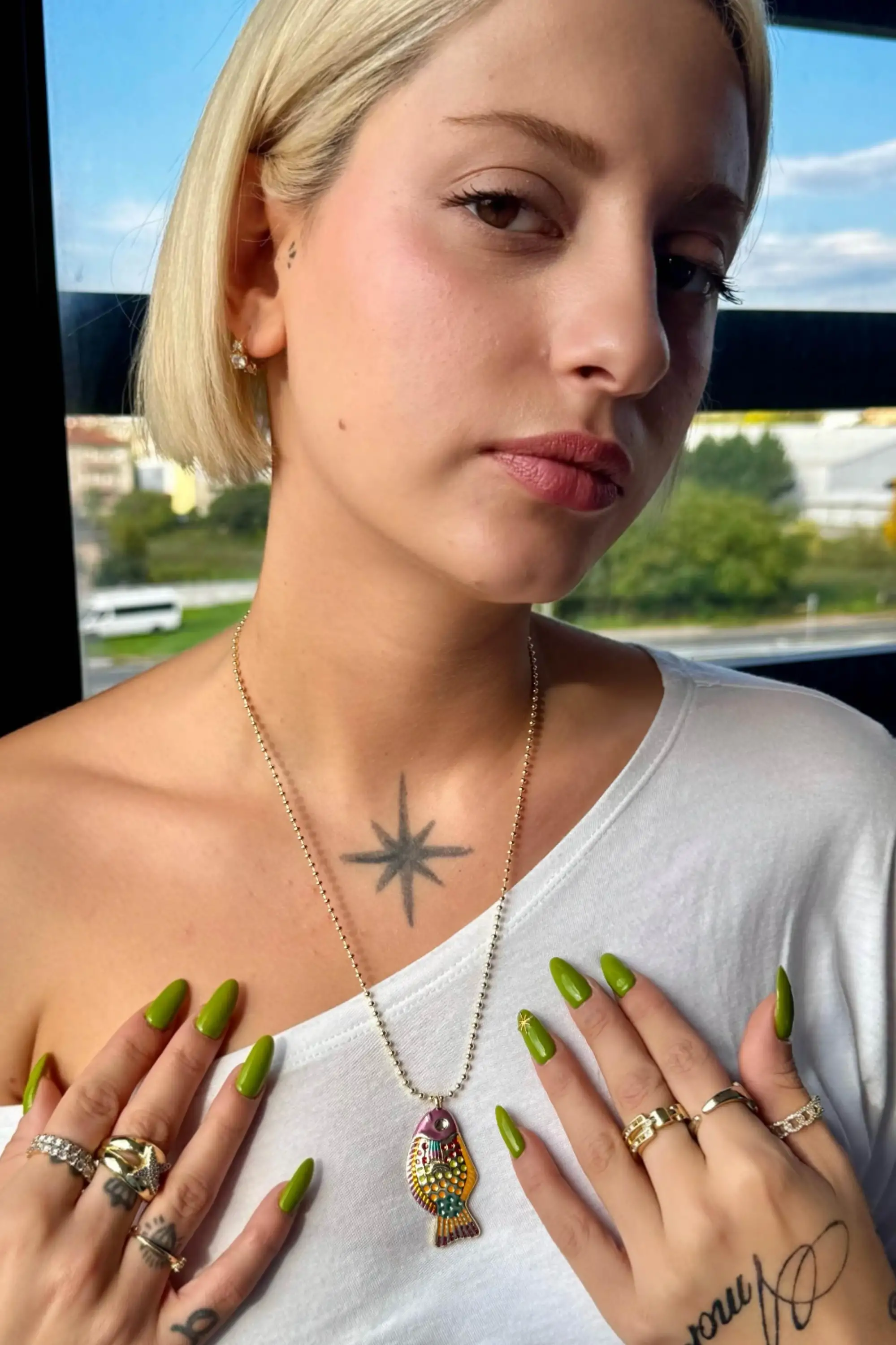 Altın Renk Balık Figürlü 14K Altın Kaplama VİP Kolye