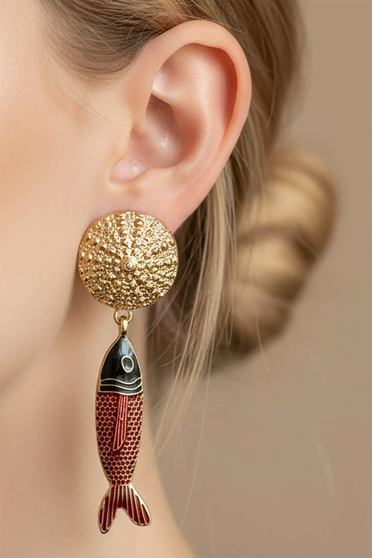 Altın Renk Balık Figürlü Tasarım Küpe(Çift)