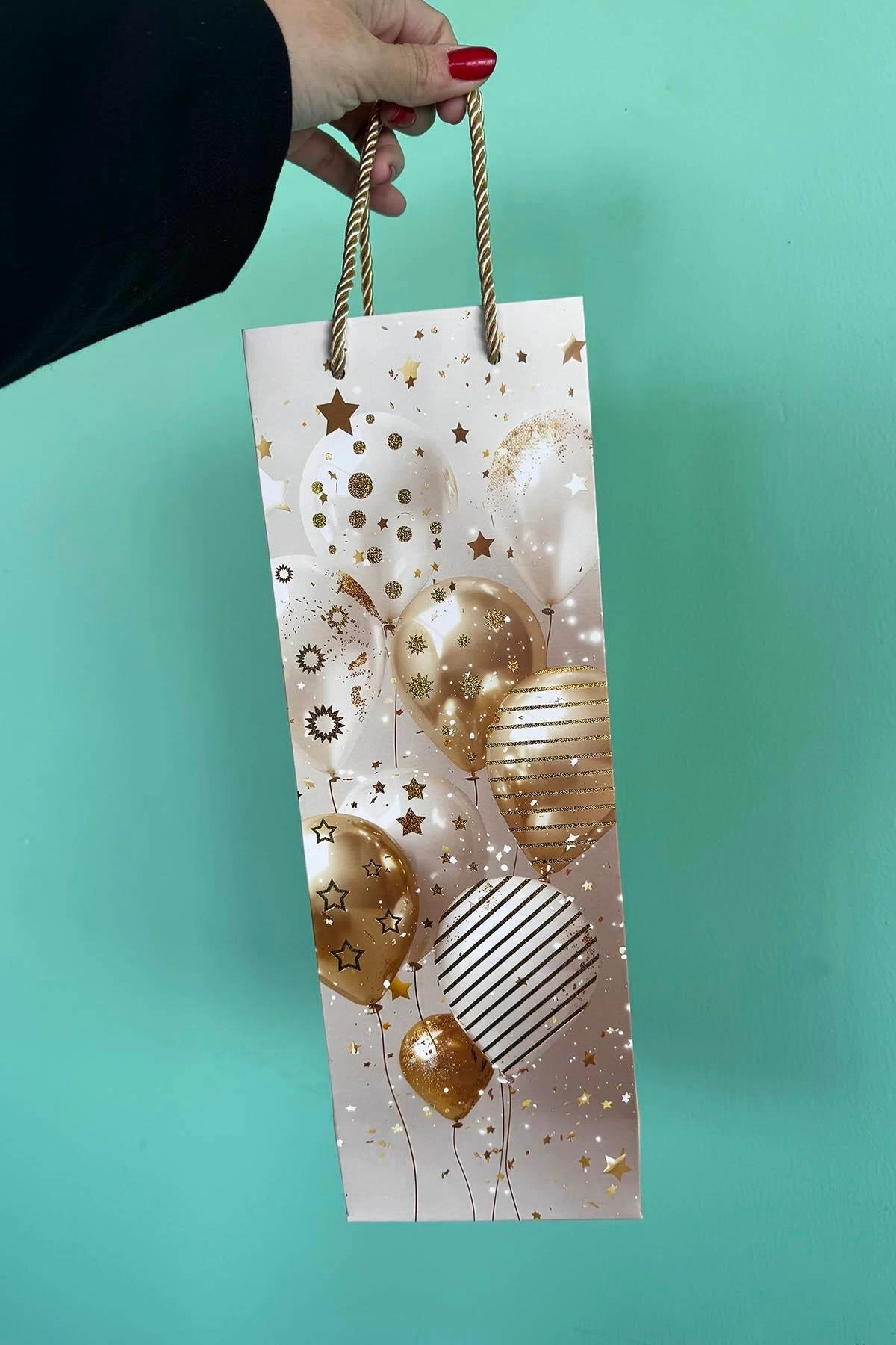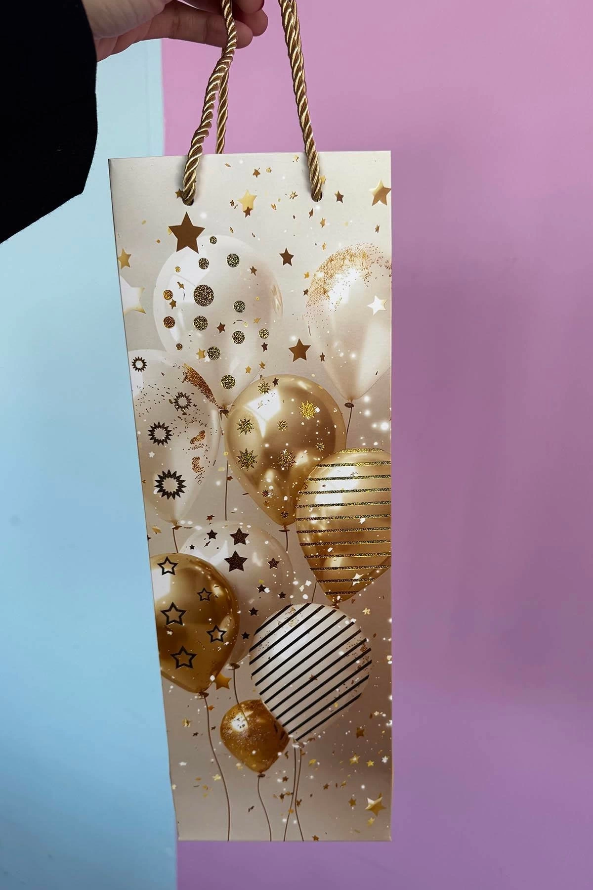 Altın Renk Balon Figürlü Karton Çanta