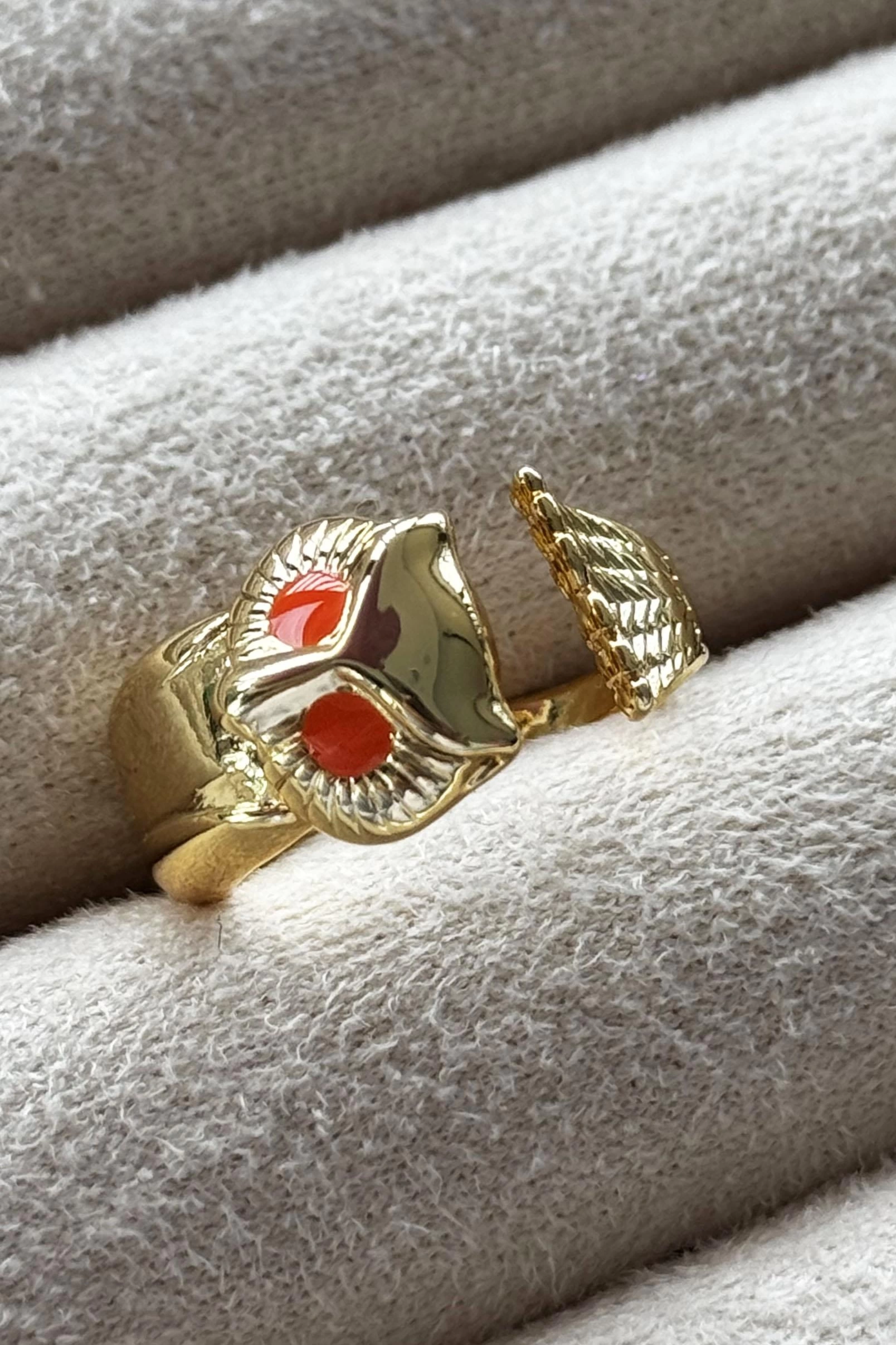 Altın Renk Baykuş Figürlü Metal Ayarlanabilir Yüzük