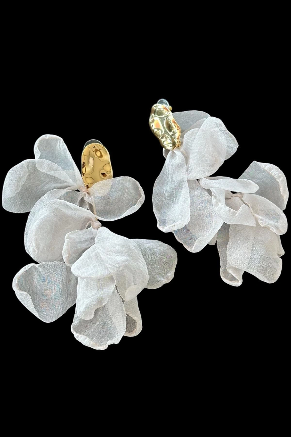 Altın Renk Beyaz Yaprak Figürlü Küpe Çift
