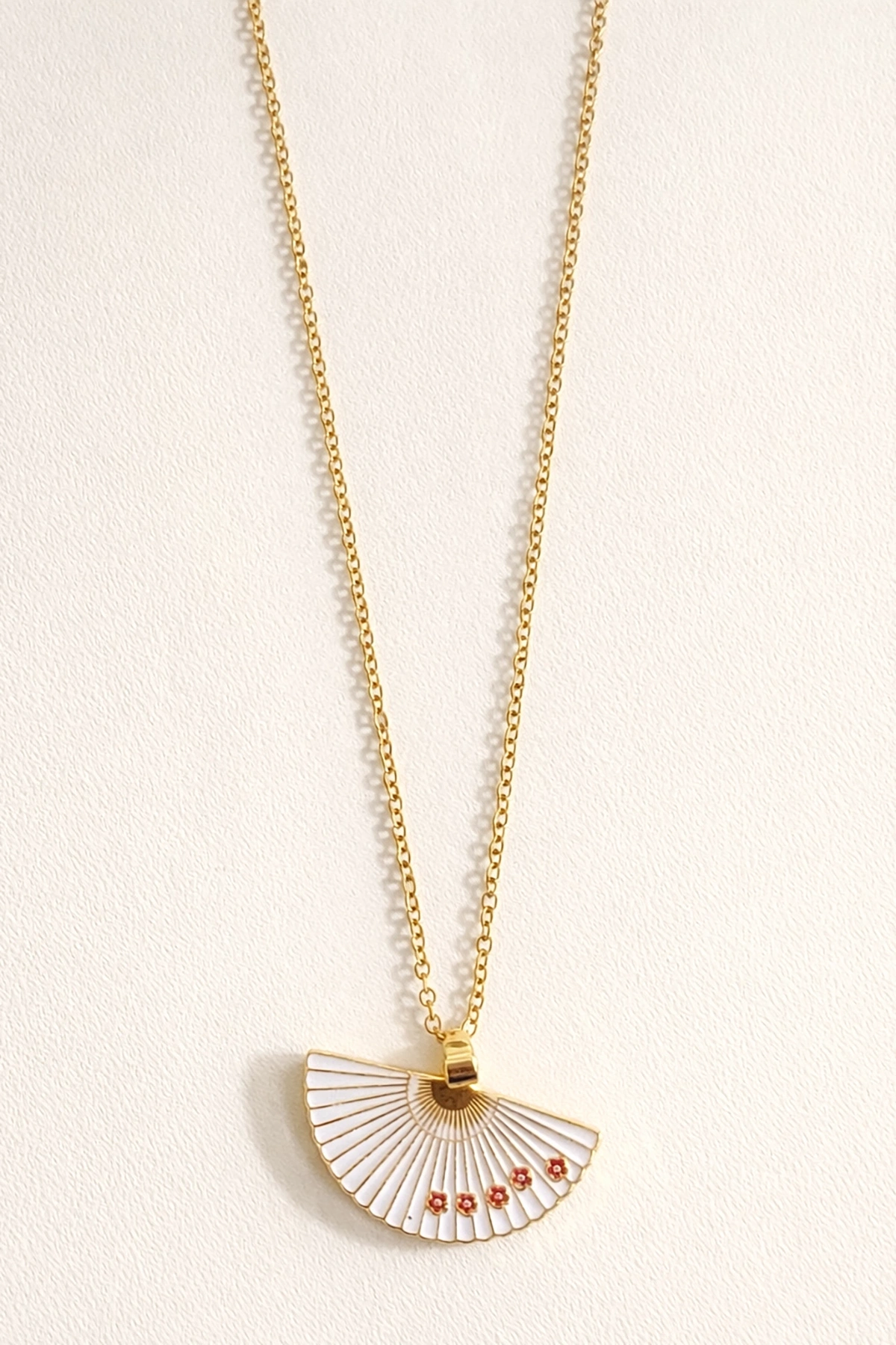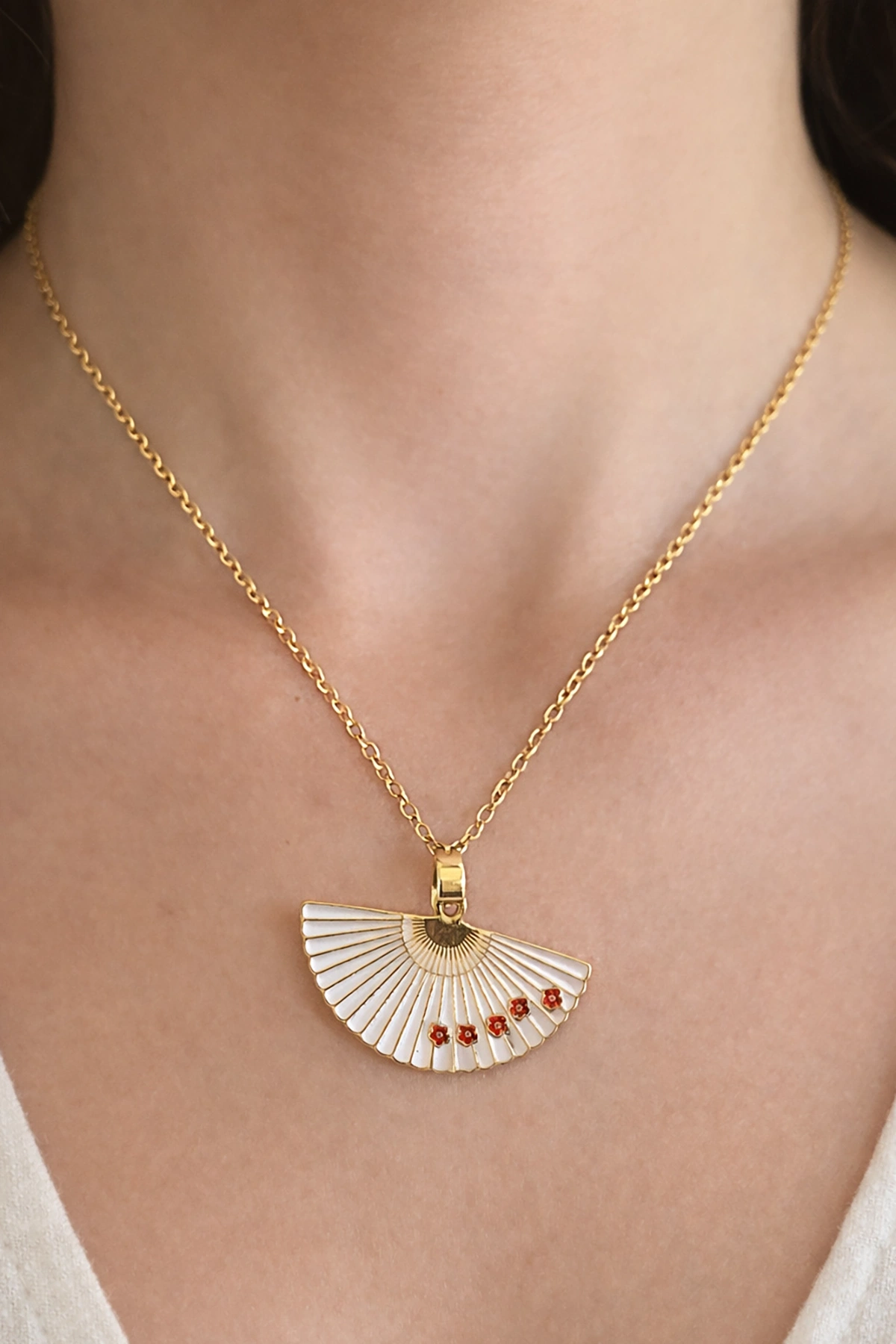 Altın Renk Beyaz Yelpaze Figürlü Çelik Kolye