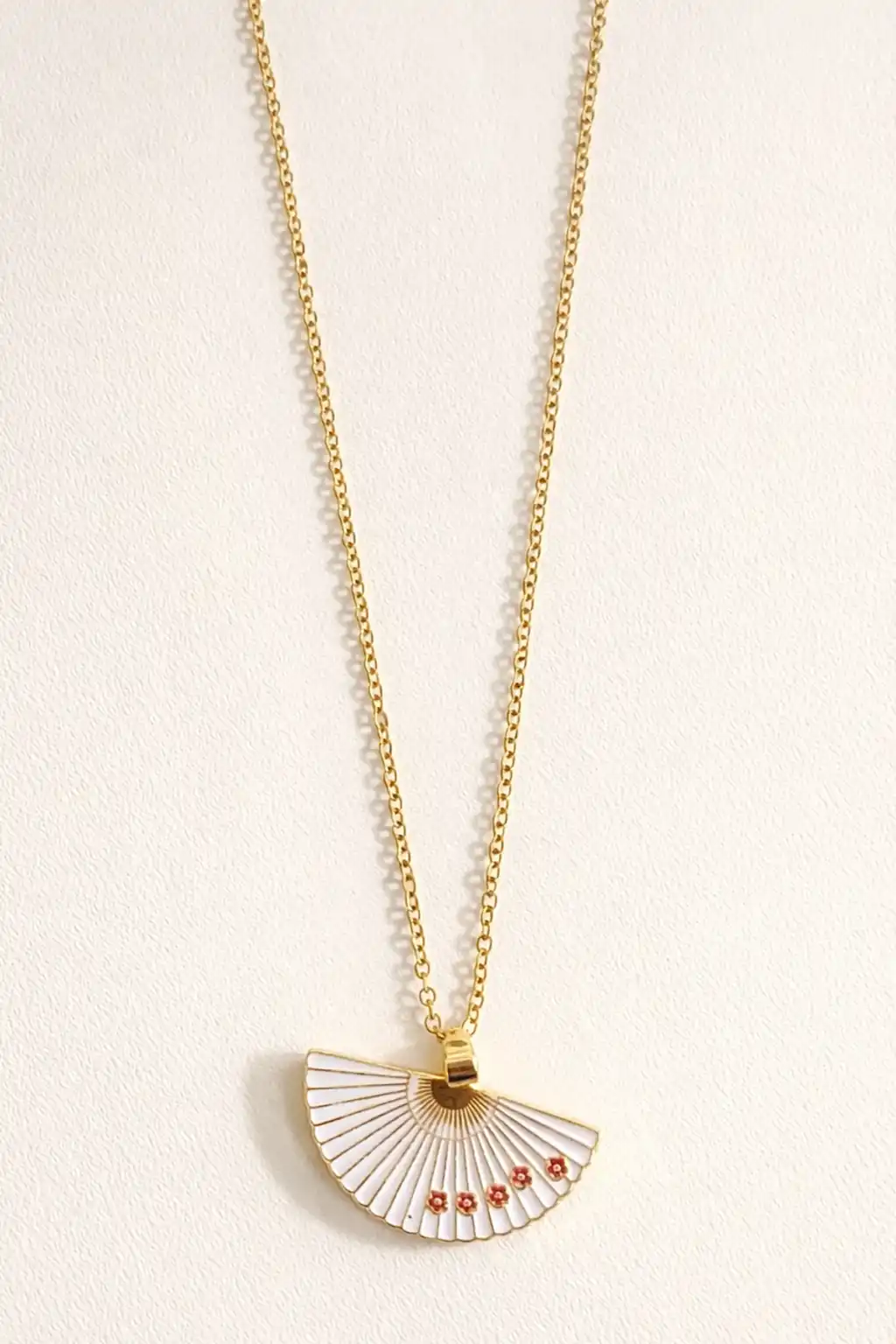 Altın Renk Kırmızı Yelpaze Figürlü Çelik Kolye