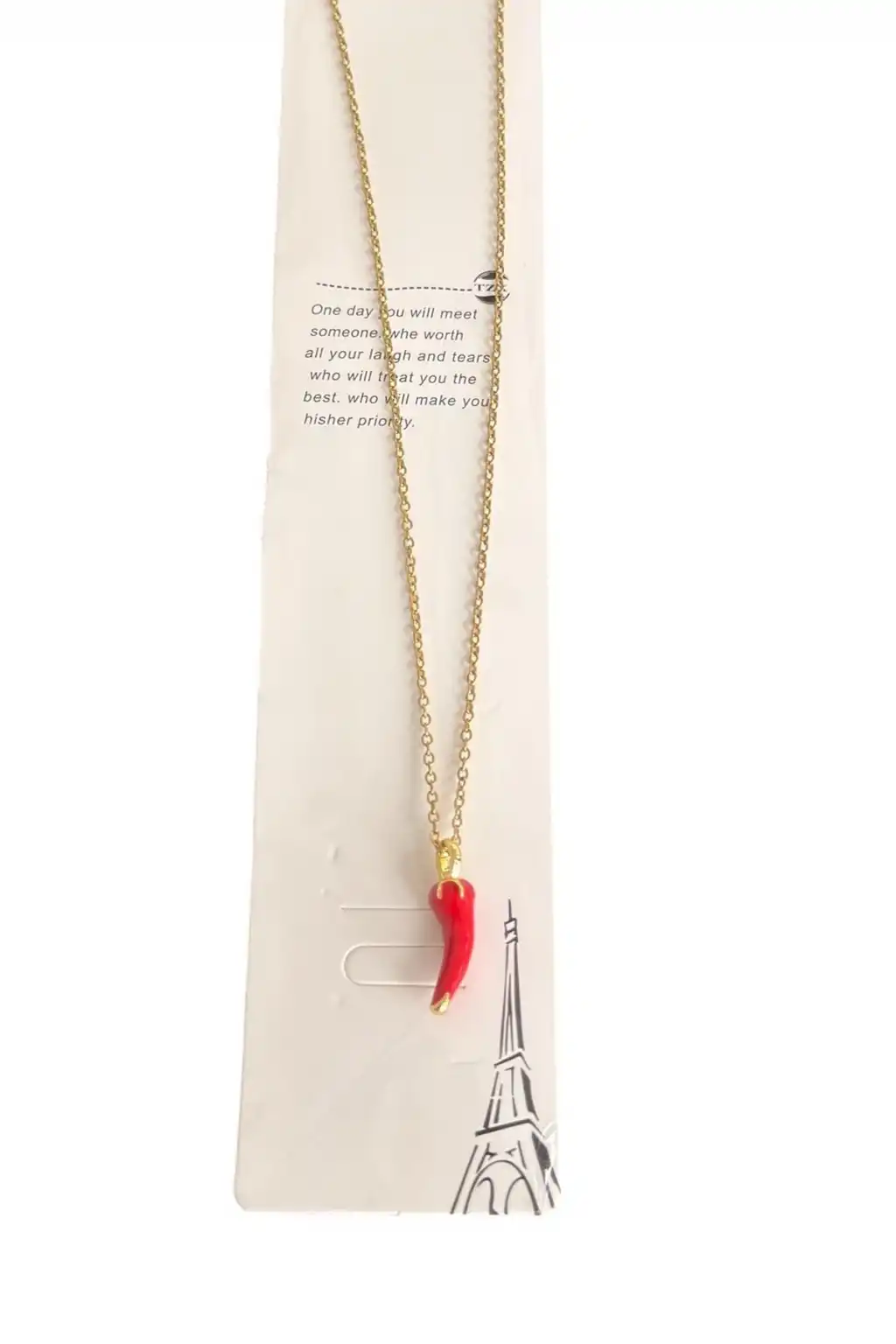 Altın Renk Biber Figürlü Çelik Şans Kolye