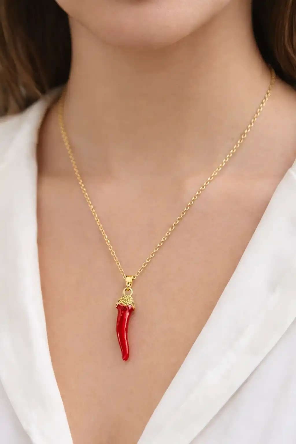 Altın Renk Biber Figürlü Çelik Şans Kolyesi