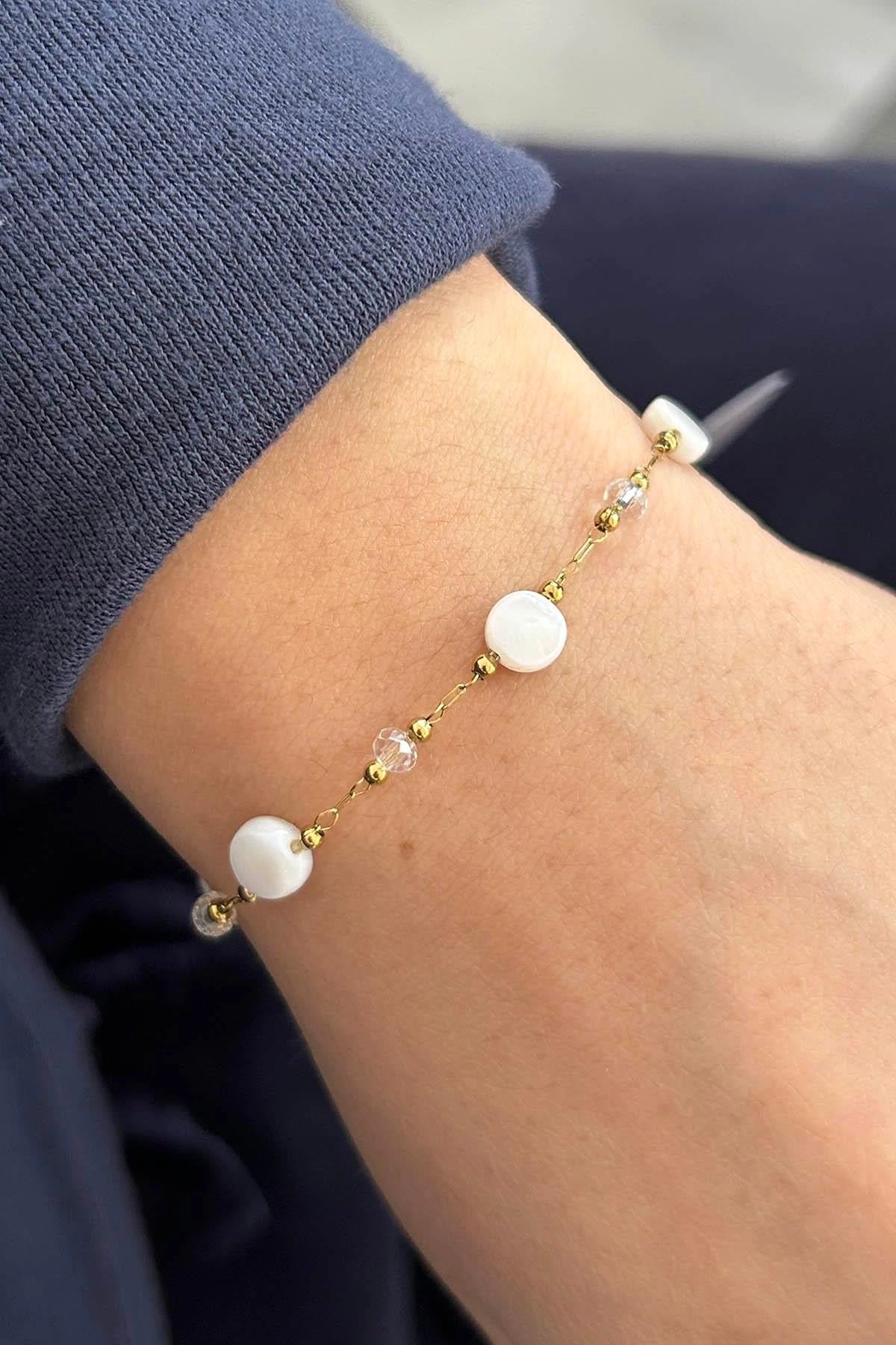 Altın Renk Boncuk Detaylı Çelik Bileklik