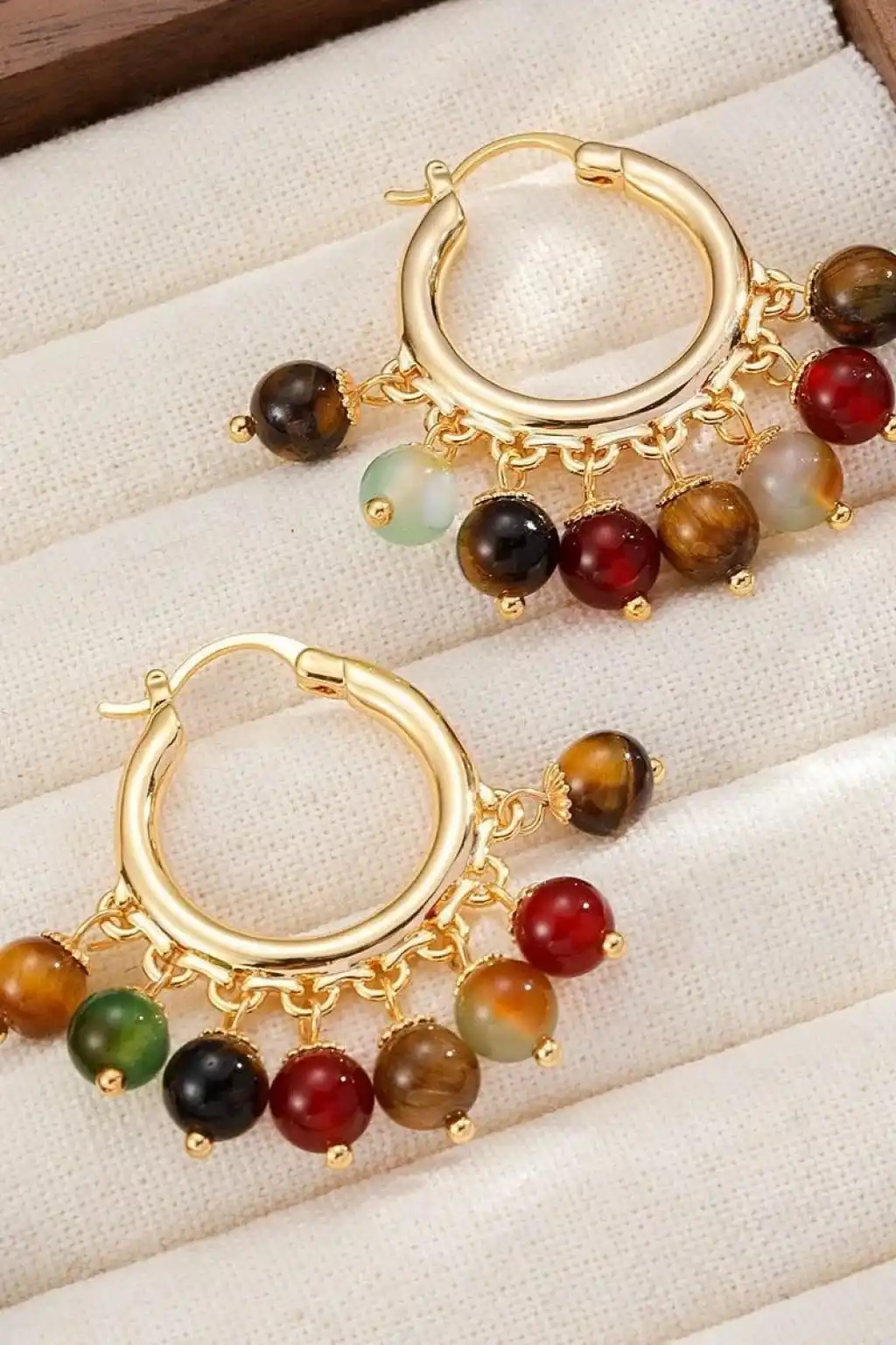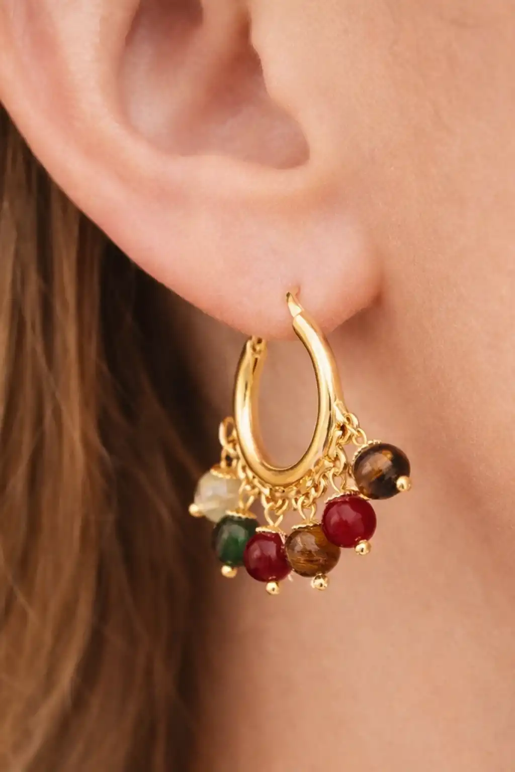 Altın Renk Boncuk Detaylı Küpe (Çift)