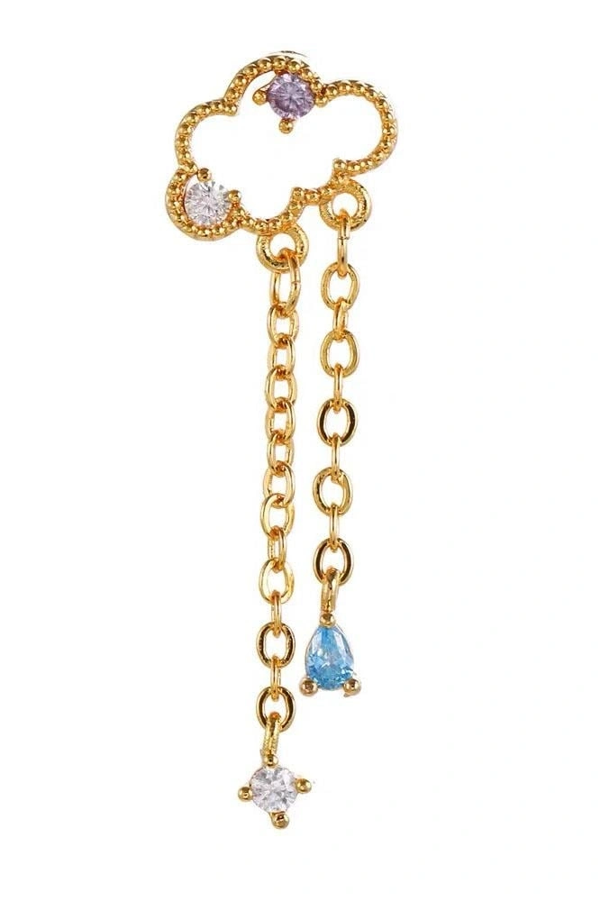 Altın Renk Bulut Figürlü Taş Detaylı Cerrahi Çelik Tragus/Kıkırdak Küpe/Piercing (Tek)