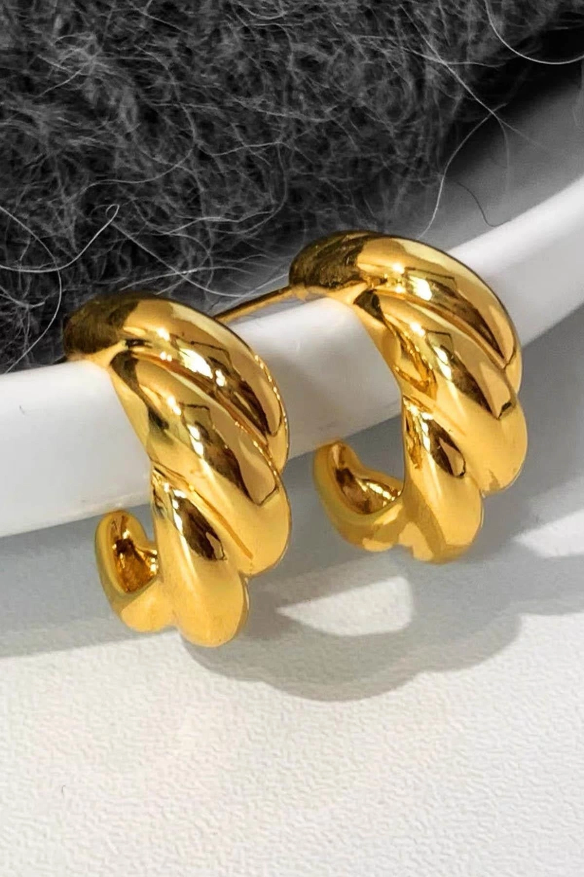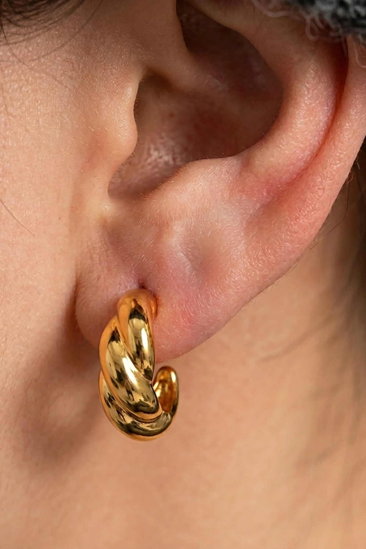 Altın Renk Burgu Detaylı Çelik Küpe (Çift)