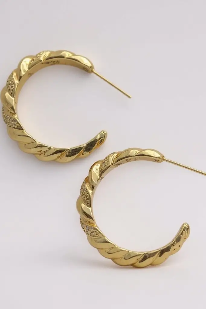 Altın Renk Burgu Detaylı Halka Küpe (Çift)
