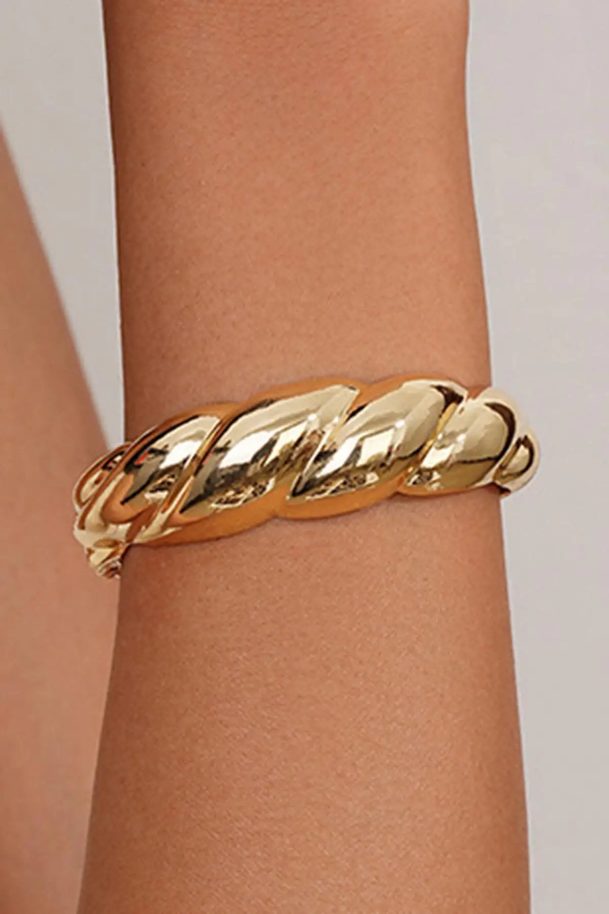 Altın Renk Burgu Detaylı Plaka Kelepçe Bileklik