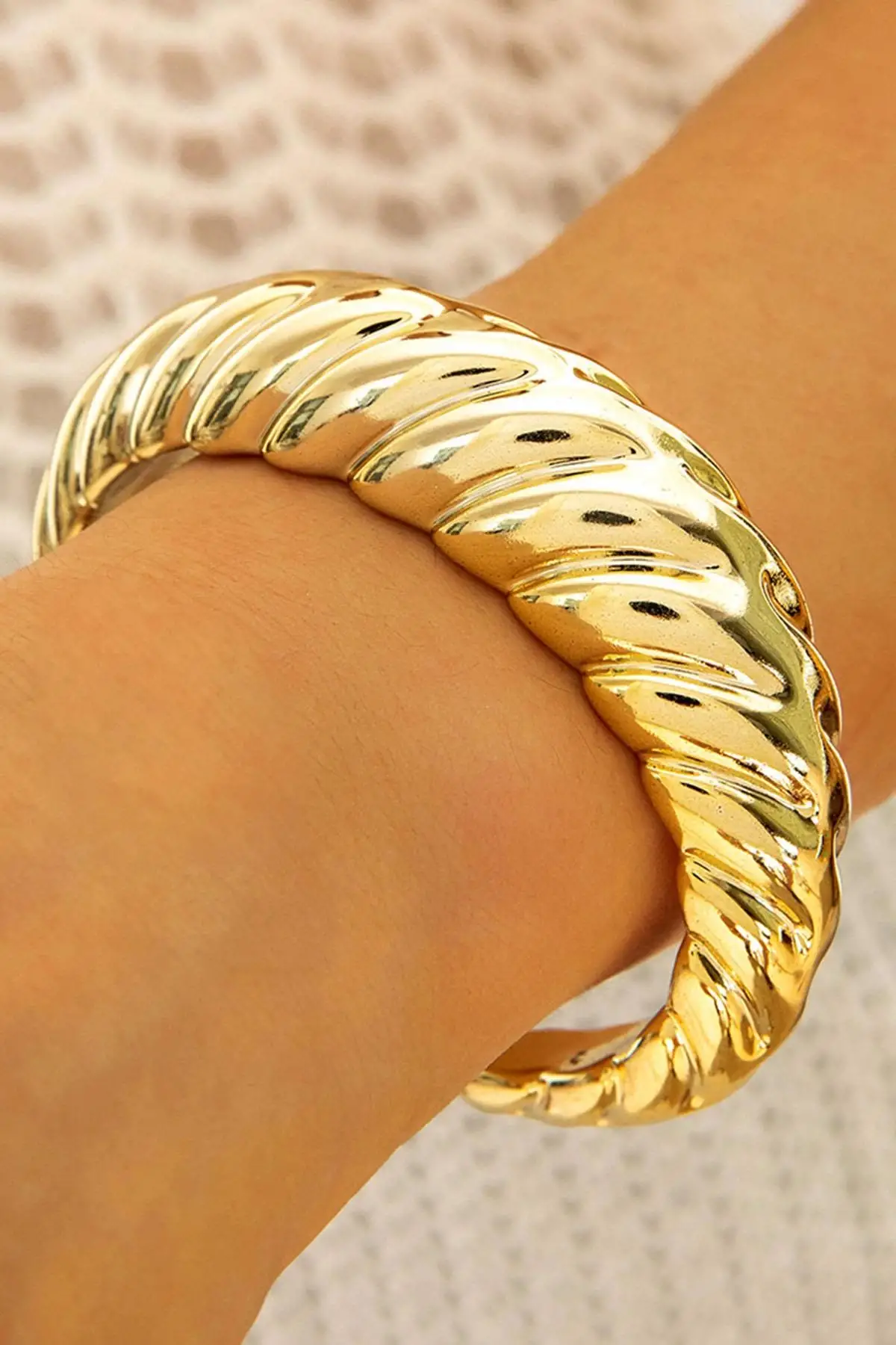 Altın Renk Burgu Detaylı Plaka Kelepçe Bileklik