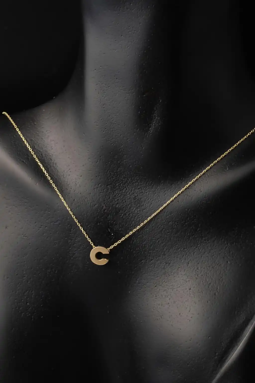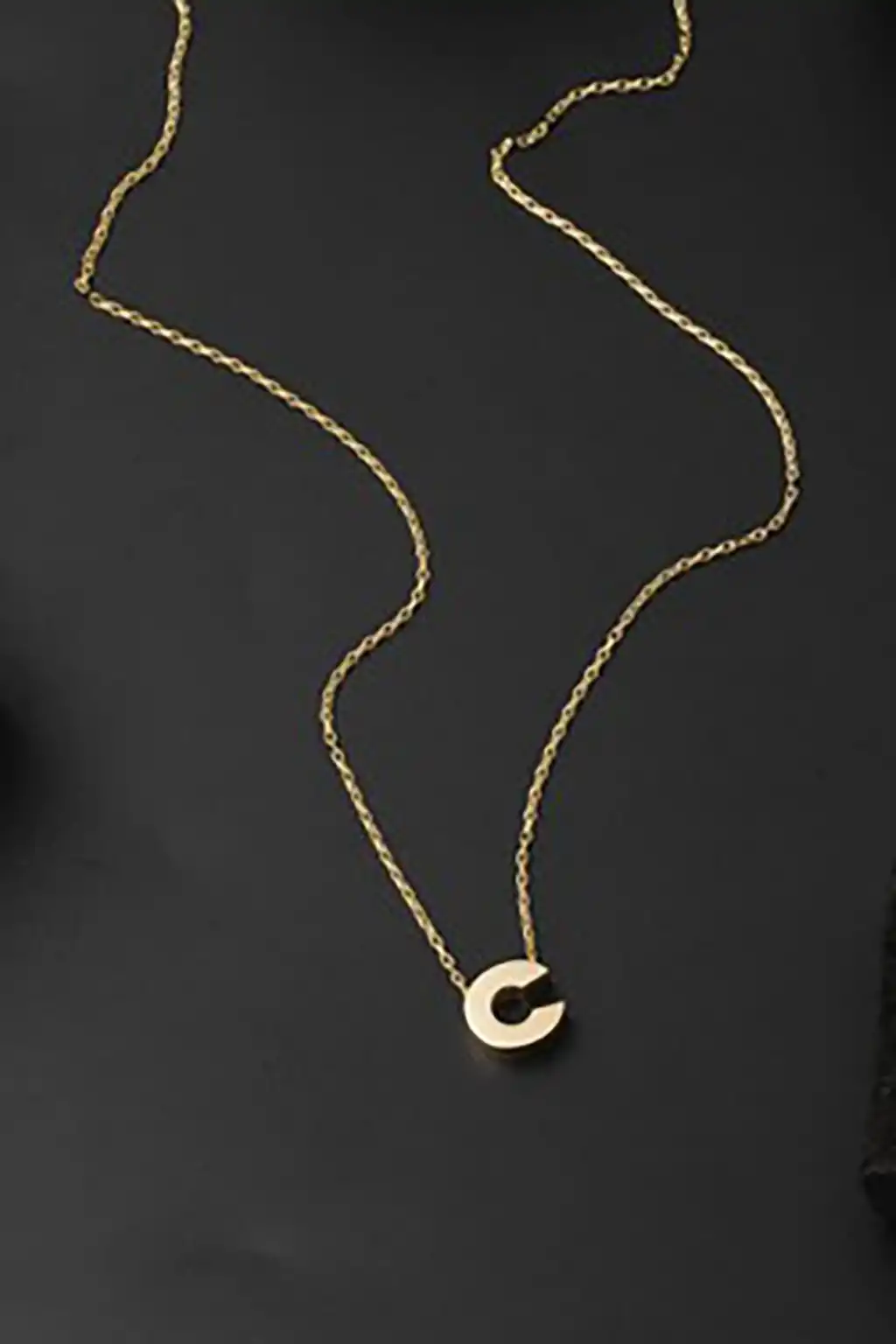 Altın Renk K Harfli Taş Detaylı Çelik Kolye