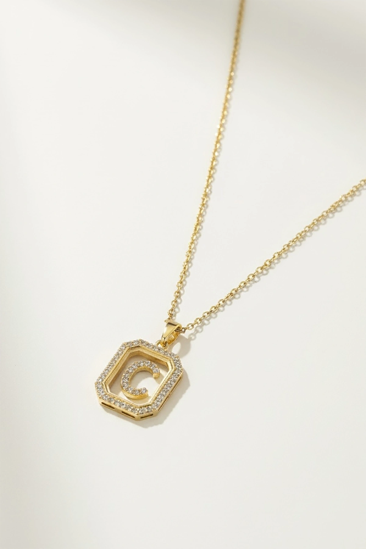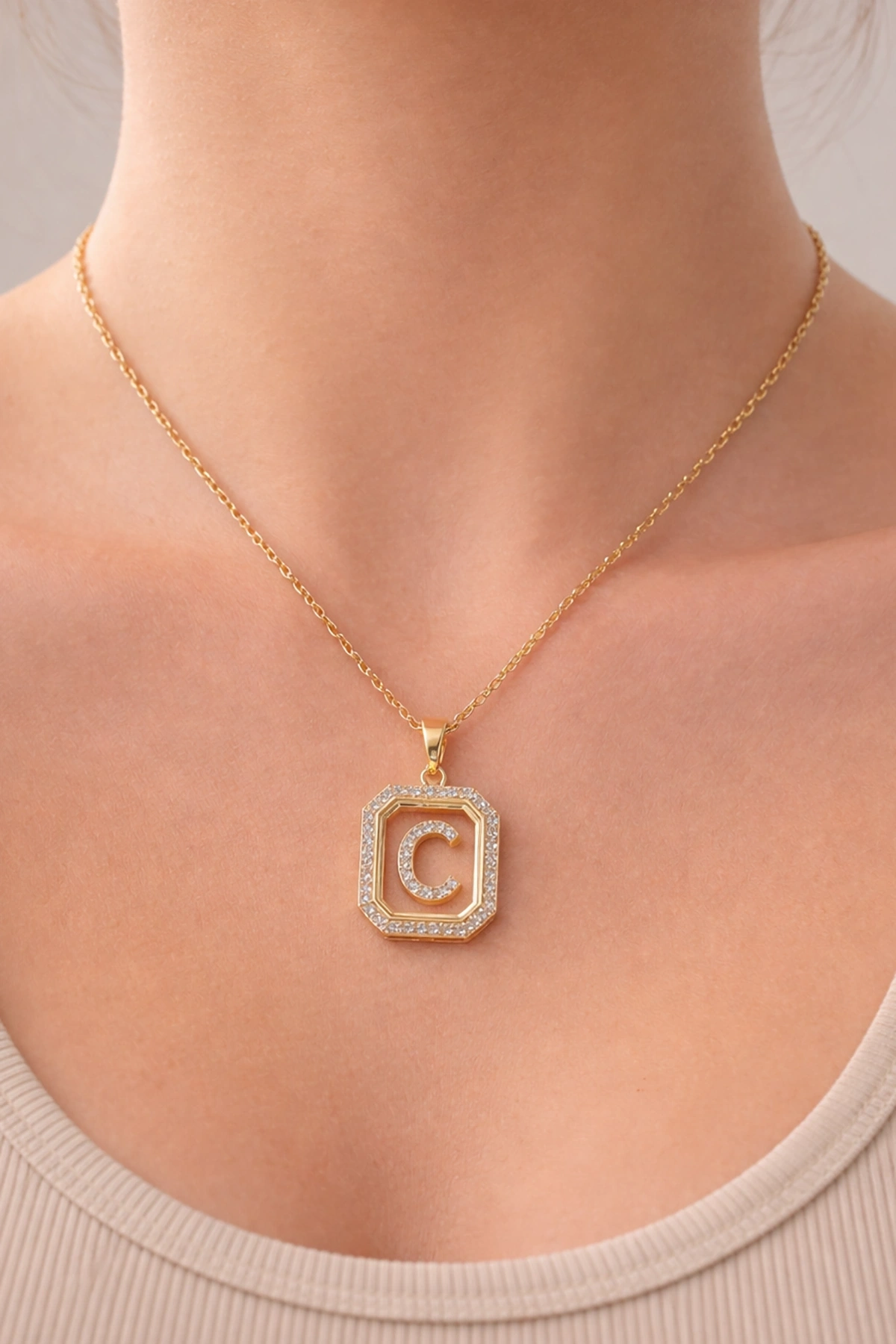 Altın Renk C Harf Taş Detaylı Çelik Kolye