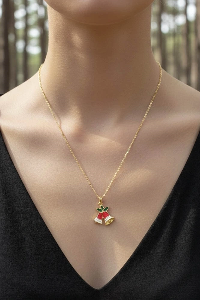Altın Renk Çan Figürlü Çelik Yılbaşı Kolyesi