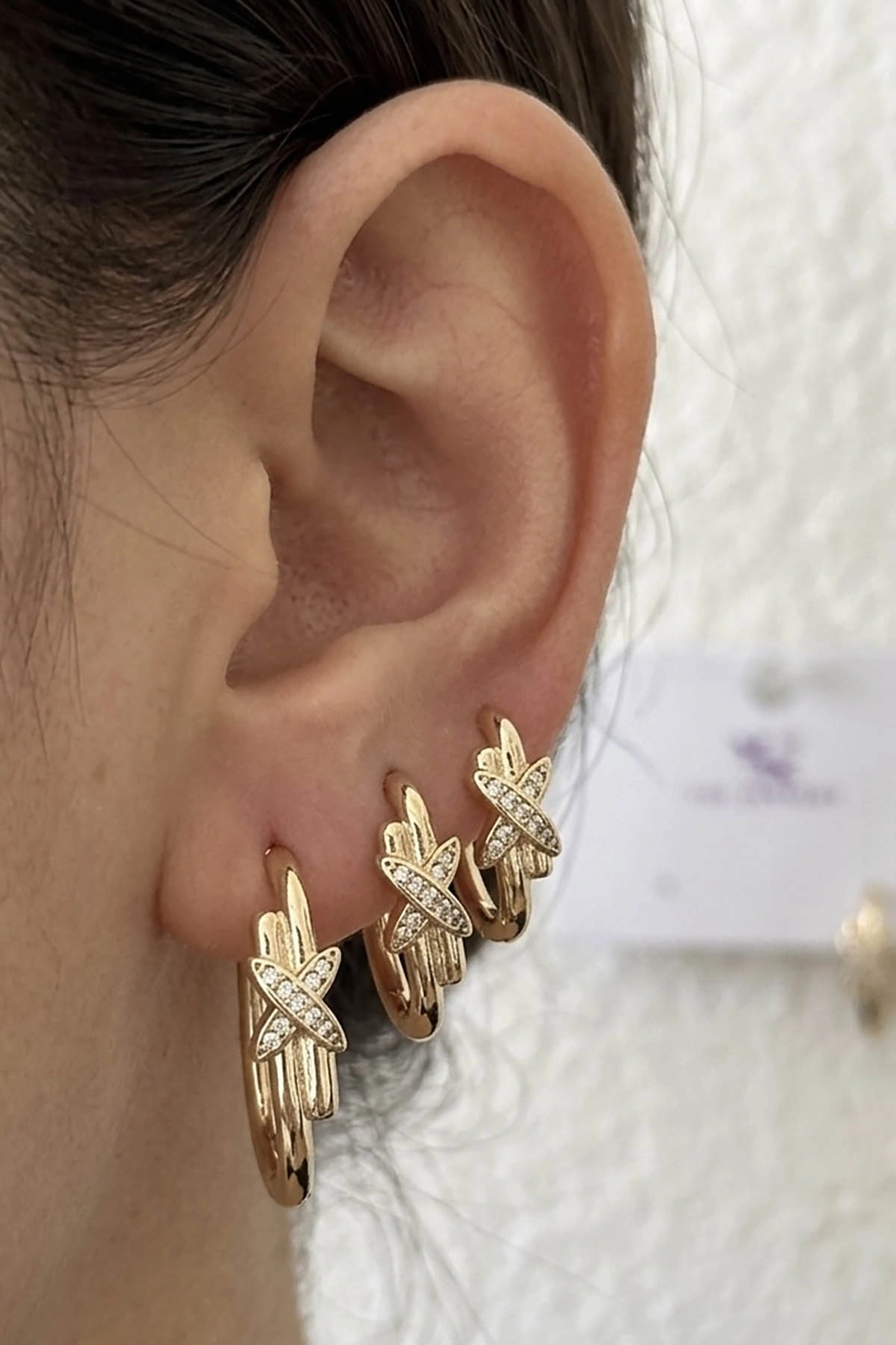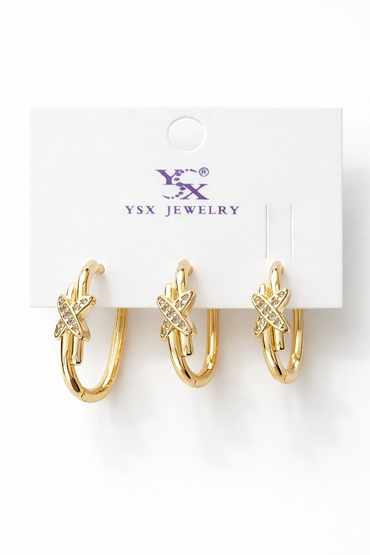 Altın Renk Çarpı Figürlü 3'lü YSX Küpe Set
