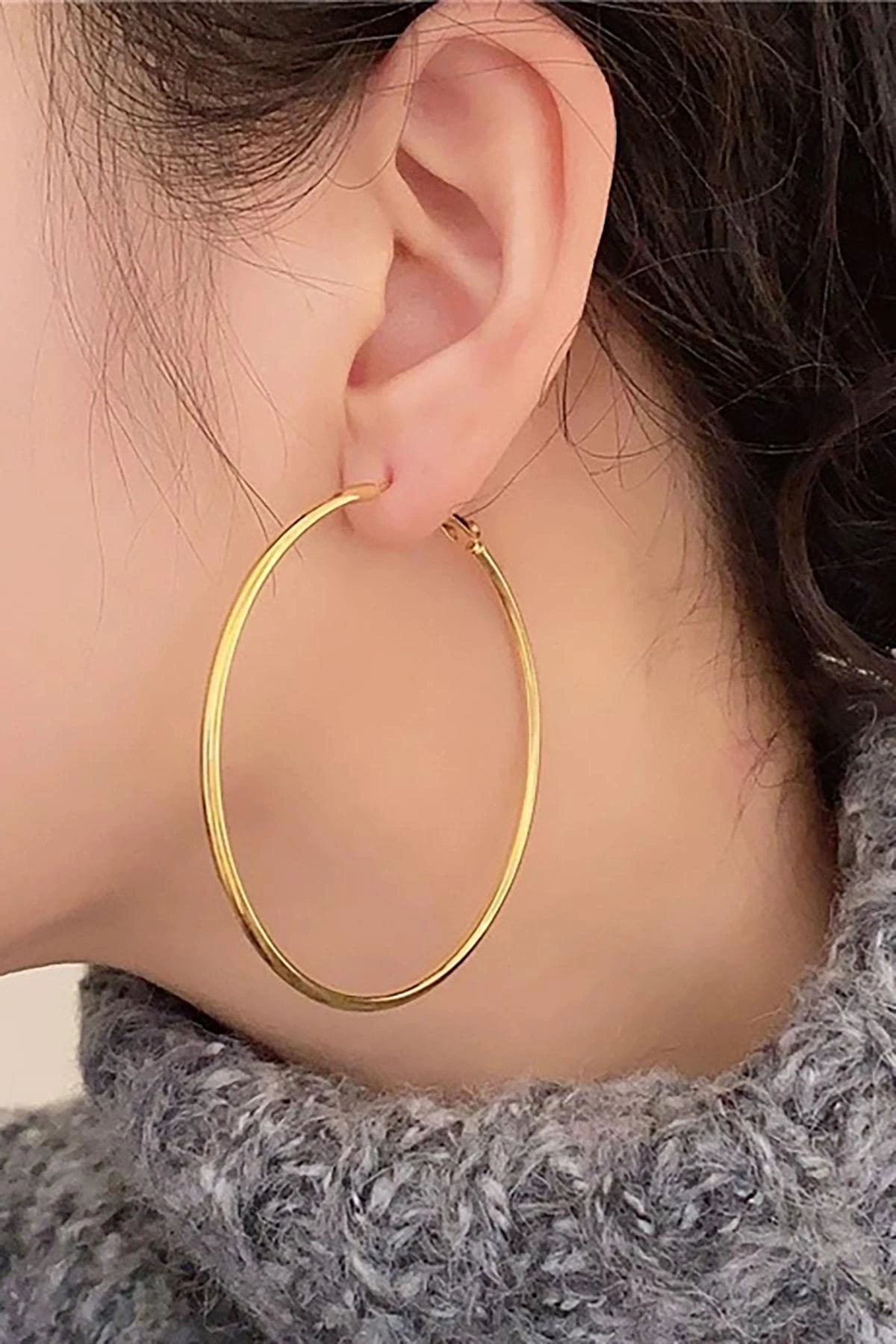 Altın Renk Çelik Halka Küpe 70Mm (Çift)