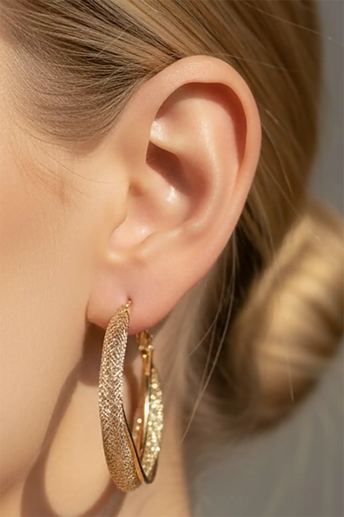 Altın Renk Halka Detaylı Çelik Küpe (Çift)
