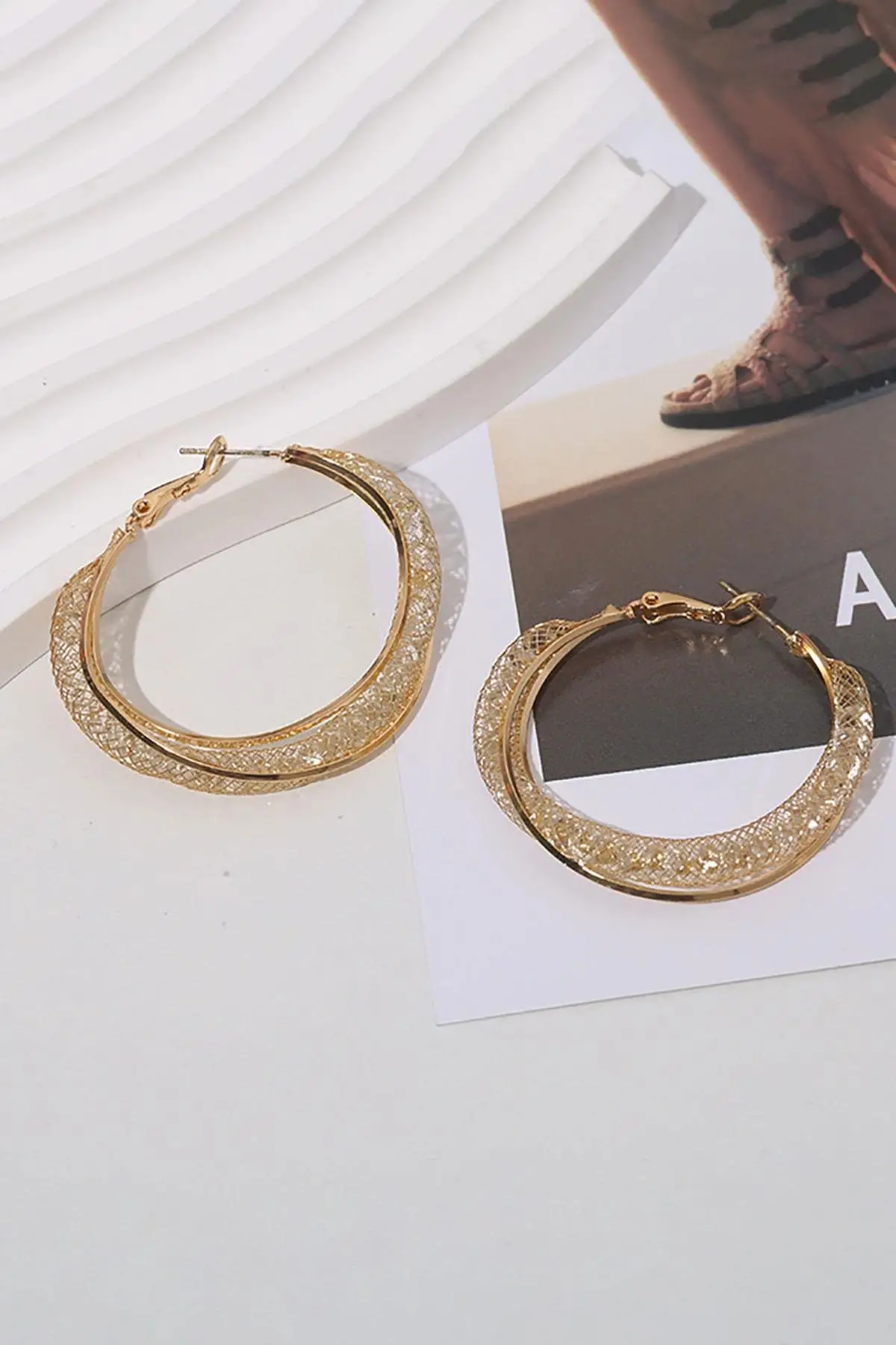 Altın Renk Sarmal Çelik Küpe (Çift)