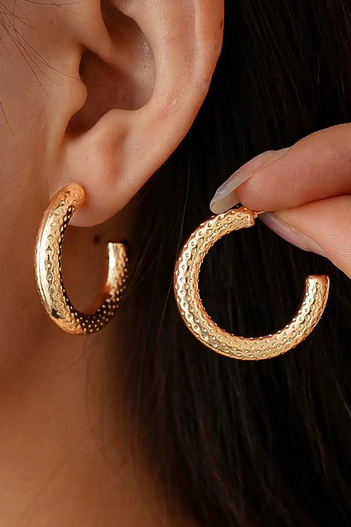 “Günlük stilinize modern bir dokunuş… Çelik küpelerimizle hem zarif hem de kalıcı ışıltı.”
