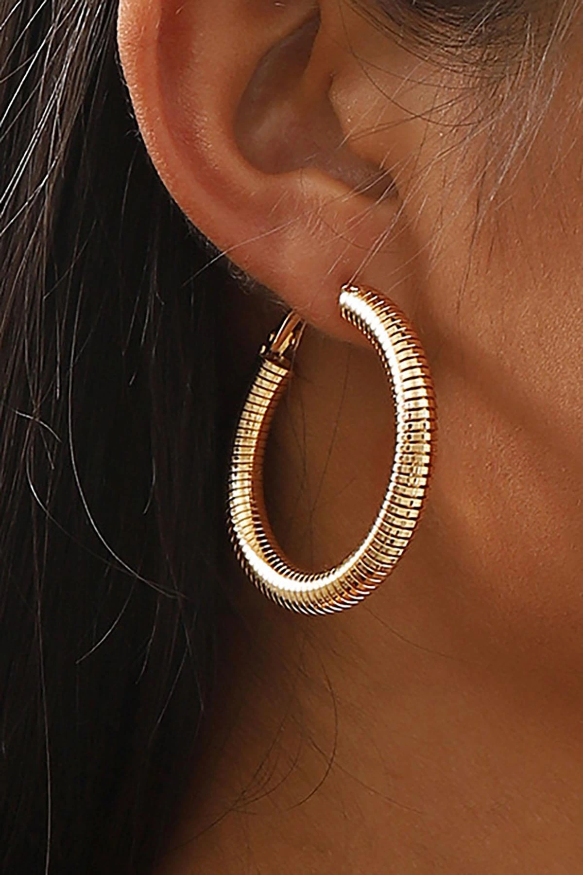 Altın Renk Çelik Halka Küpe (Çift)