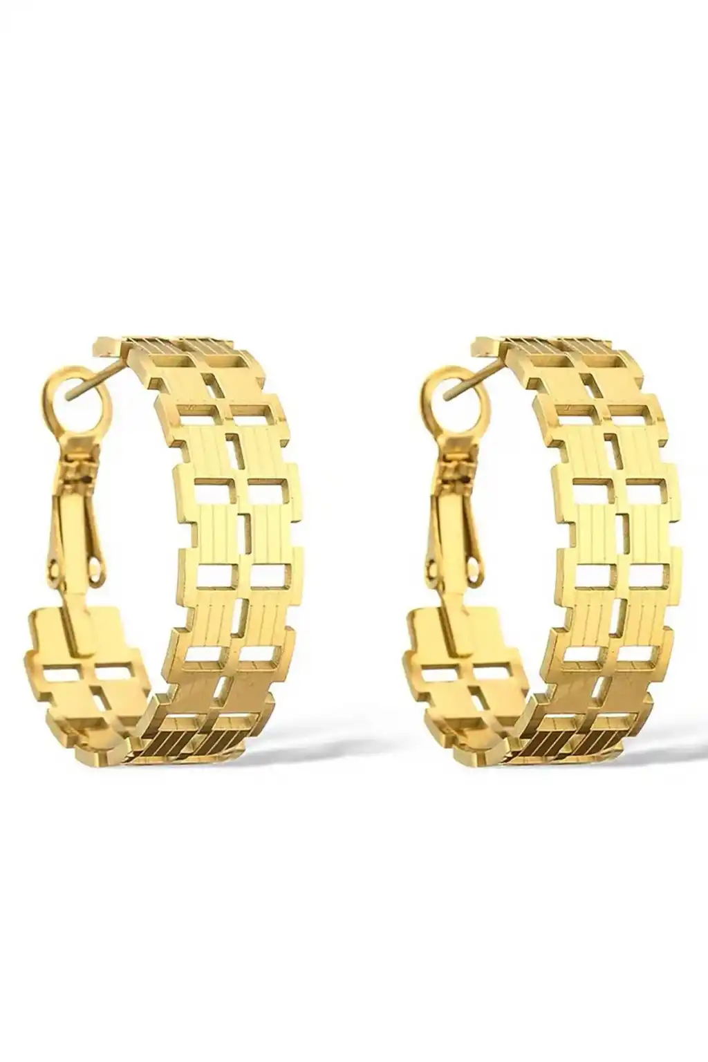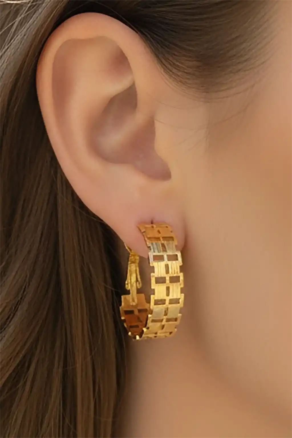 Altın Renk Mavi Taş Detaylı Çelik Küpe (Çift)