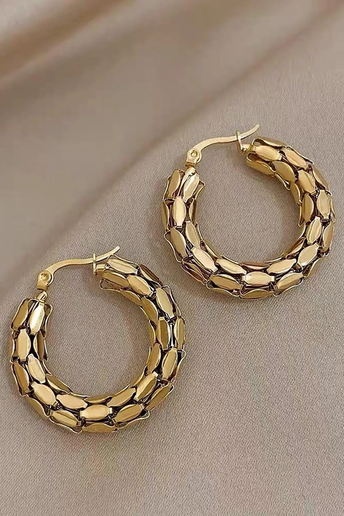 Altın Renk Taş Detaylı Çelik Küpe (Çift)