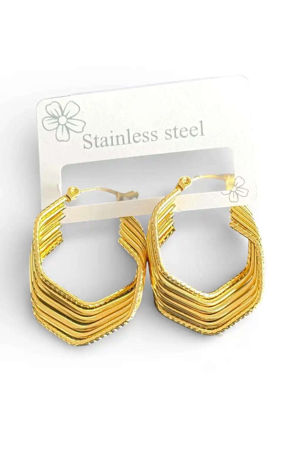Altın Renk Taş Detaylı Çelik Küpe (Çift)