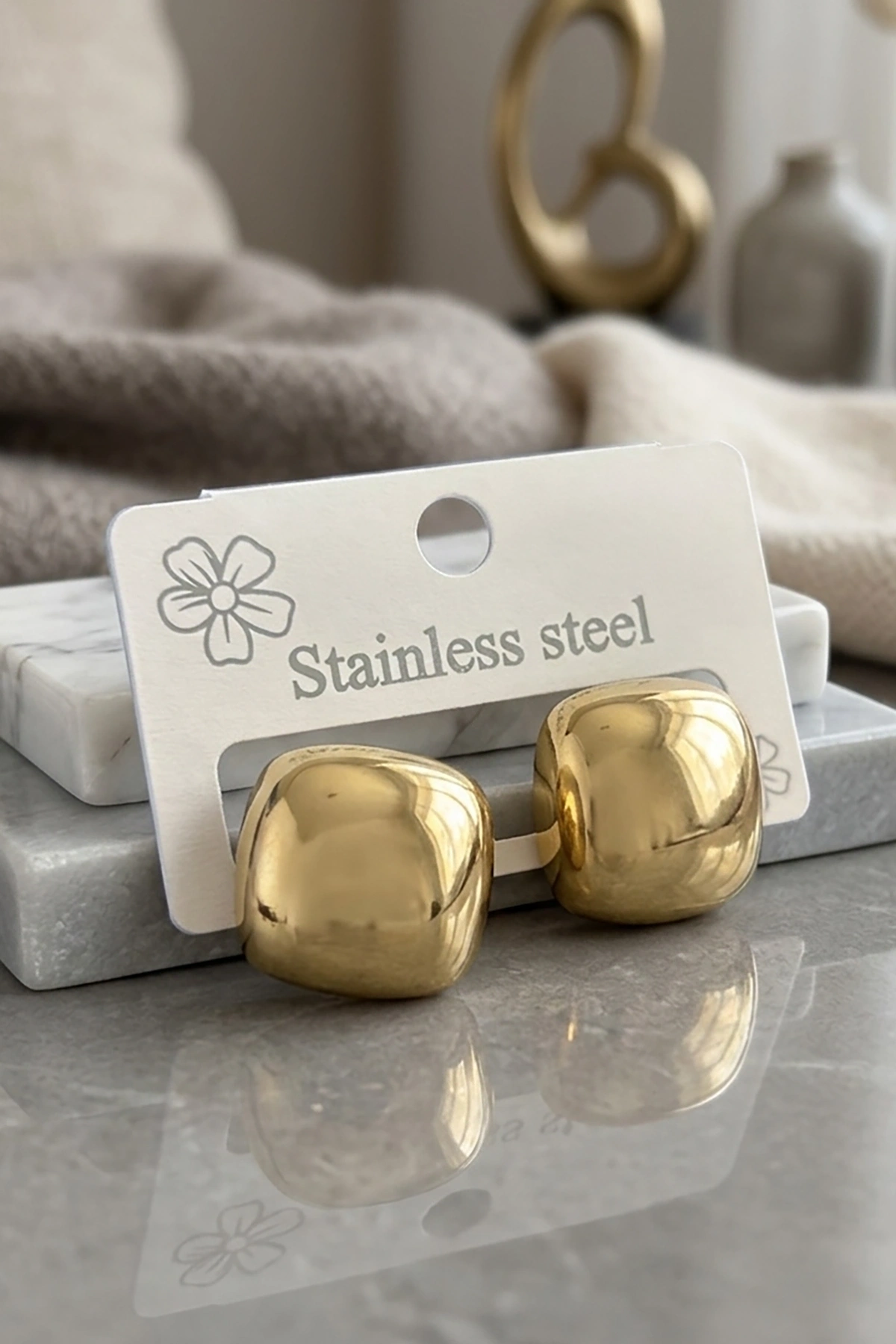 Altın Renk Çelik Küpe (Çift)