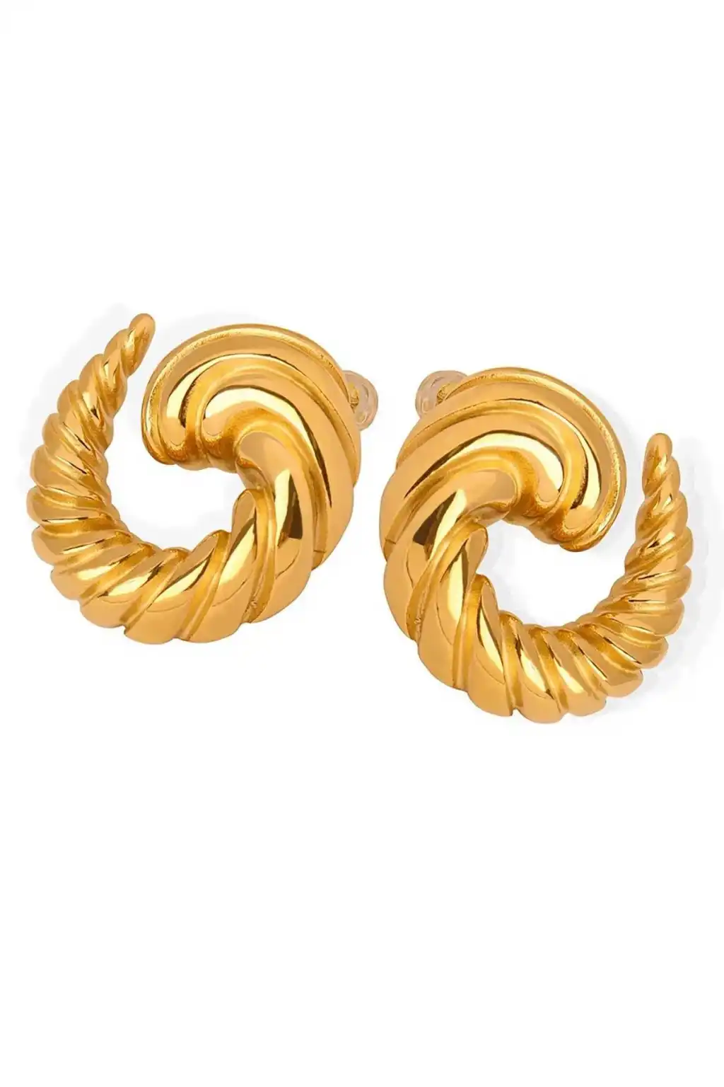 Altın Renk Mavi Taş Detaylı Çelik Küpe (Çift)
