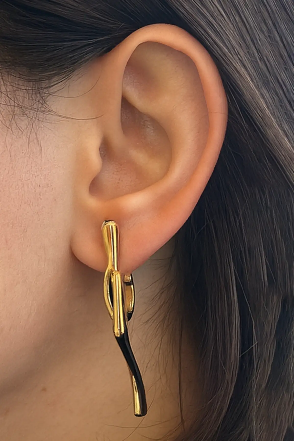 - Zarif tasarımıyla dikkat çeken bu çift küpe, altın rengi detaylarıyla göz alıcı bir görünüm sunar.