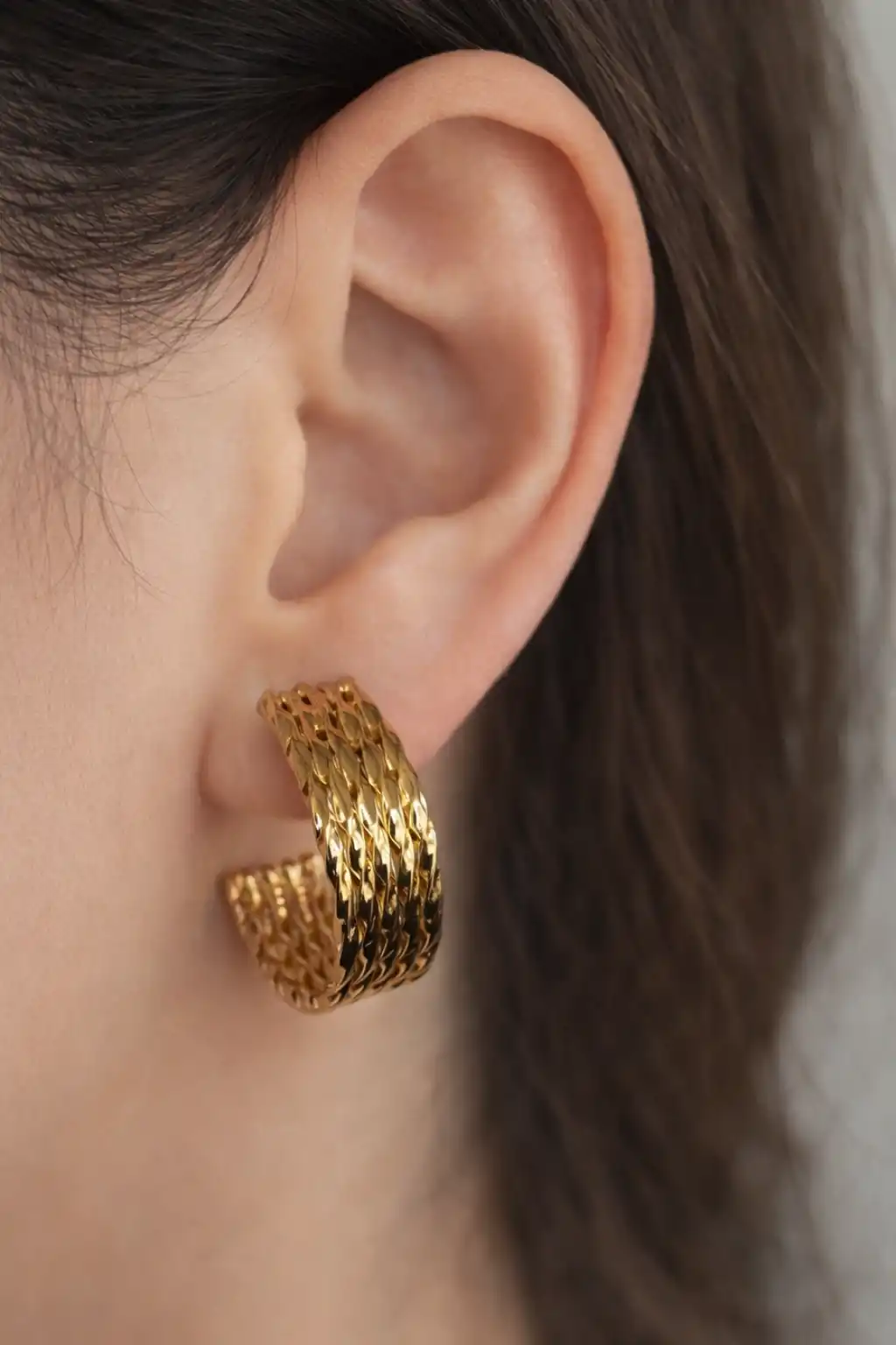 Günlük stilinize modern bir dokunuş katan, sade ve şık tasarımlı küpe. Hafif yapısıyla gün boyu rahat kullanım sağlar, her kombinle uyum yakalar.