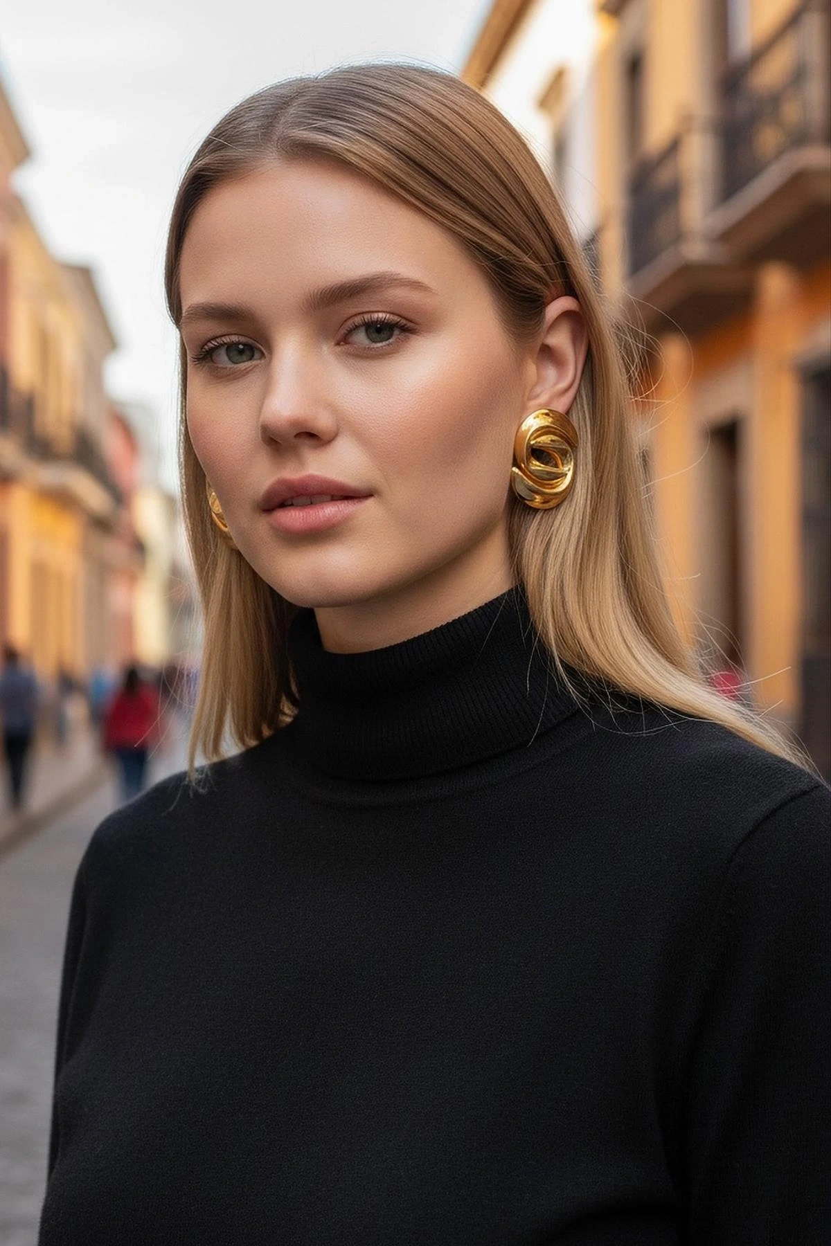 “Günlük stilinize modern bir dokunuş…  Çelik küpelerimizle hem zarif hem de kalıcı ışıltı.”
