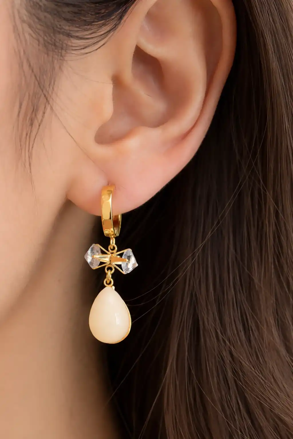 Altın Renk Taş Detaylı Çelik Küpe (Çift)