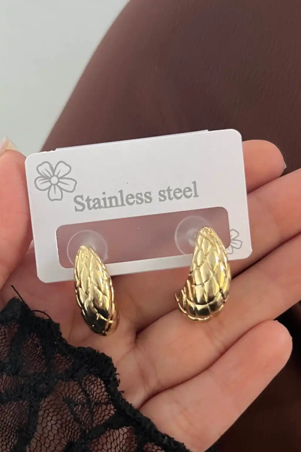 “Günlük stilinize modern bir dokunuş… Çelik küpelerimizle hem zarif hem de kalıcı ışıltı.”