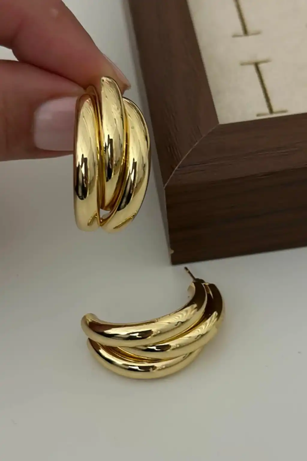 “Günlük stilinize modern bir dokunuş… Çelik küpelerimizle hem zarif hem de kalıcı ışıltı.”