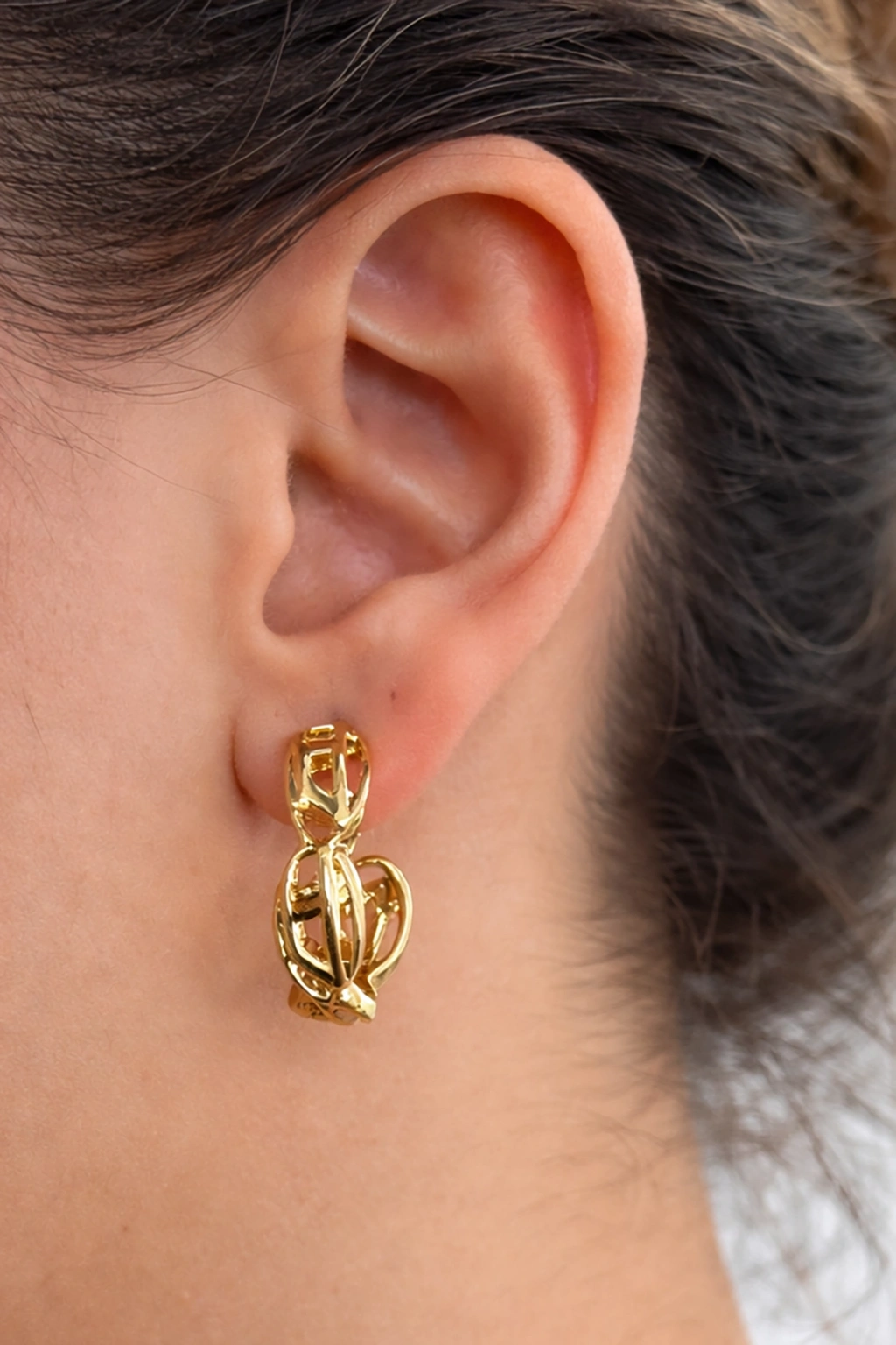 Altın Renk Kalp Figürlü Çelik Küpe (Çift)