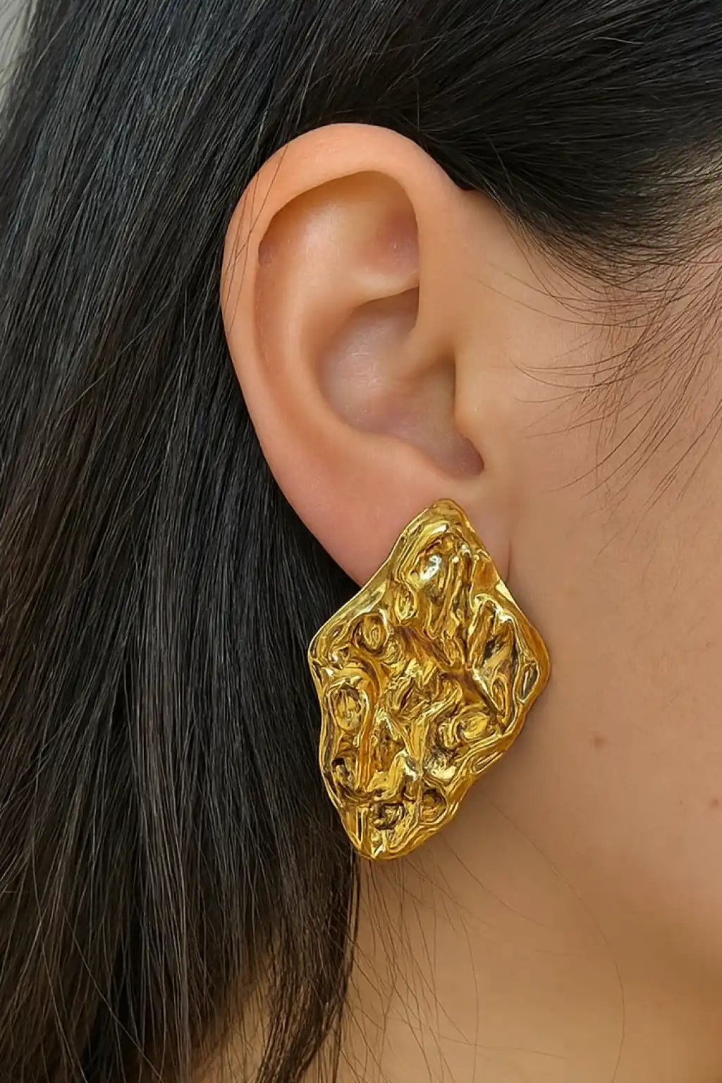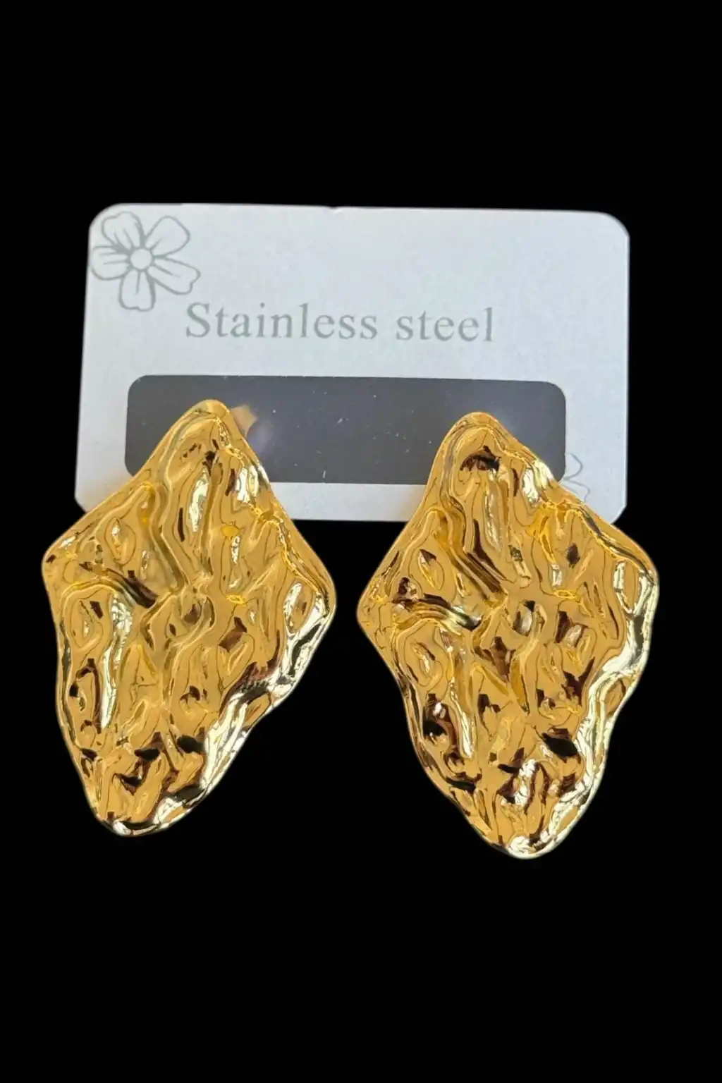 Altın Renk Mavi Taş Detaylı Çelik Küpe (Çift)