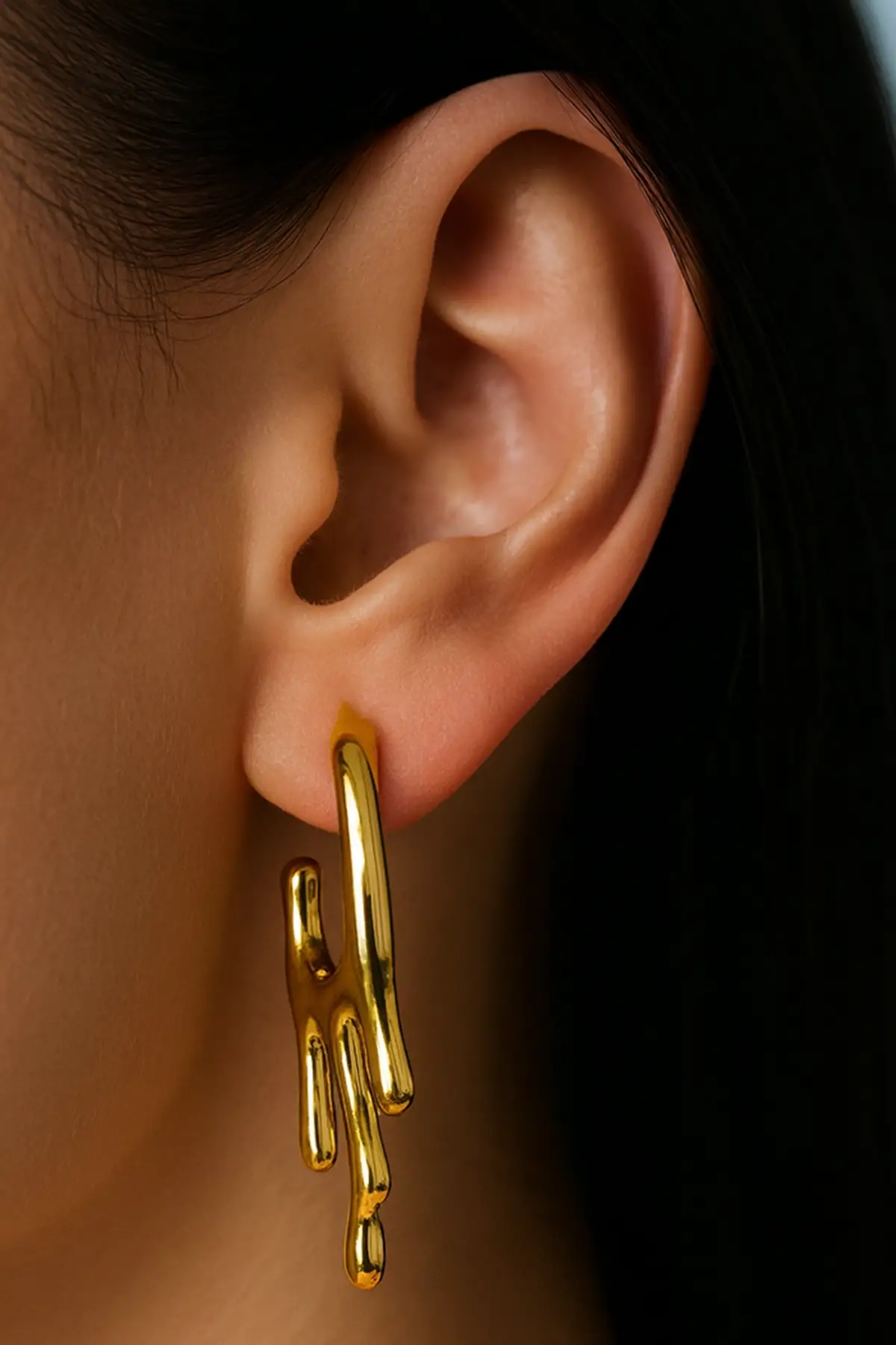 - Zarif tasarımıyla dikkat çeken bu çift küpe, altın rengi detaylarıyla göz alıcı bir görünüm sunar.