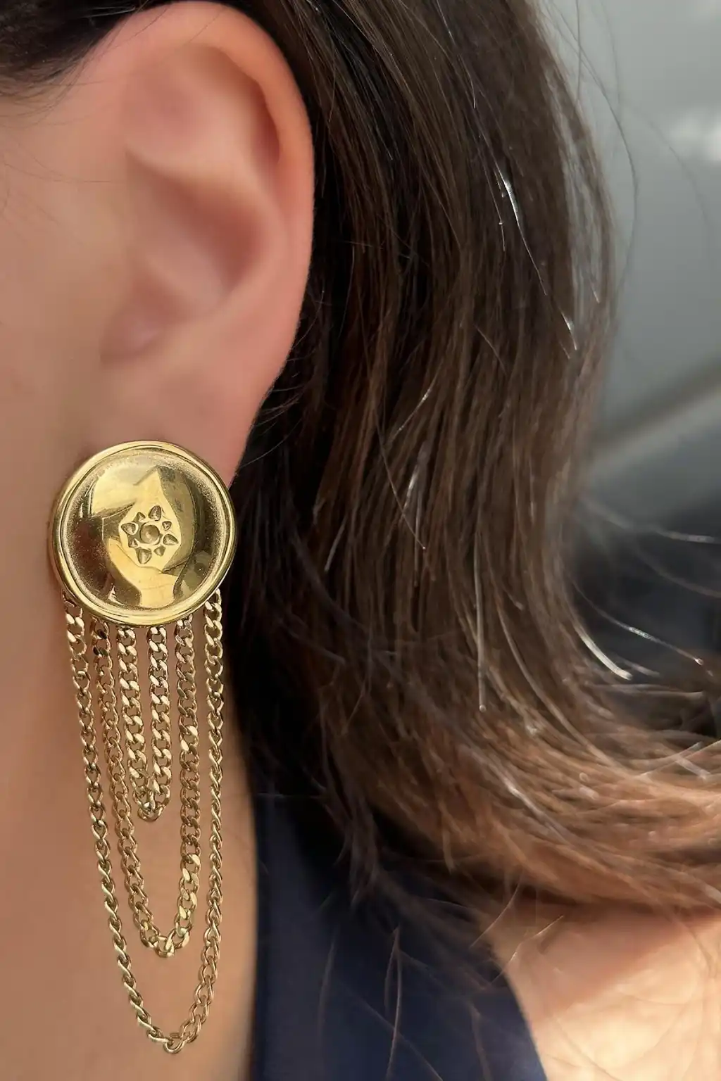 - Zarif altın renk tasarımıyla dikkat çeken çift küpe, her kıyafetle uyum sağlayarak şıklığınızı tamamlar.