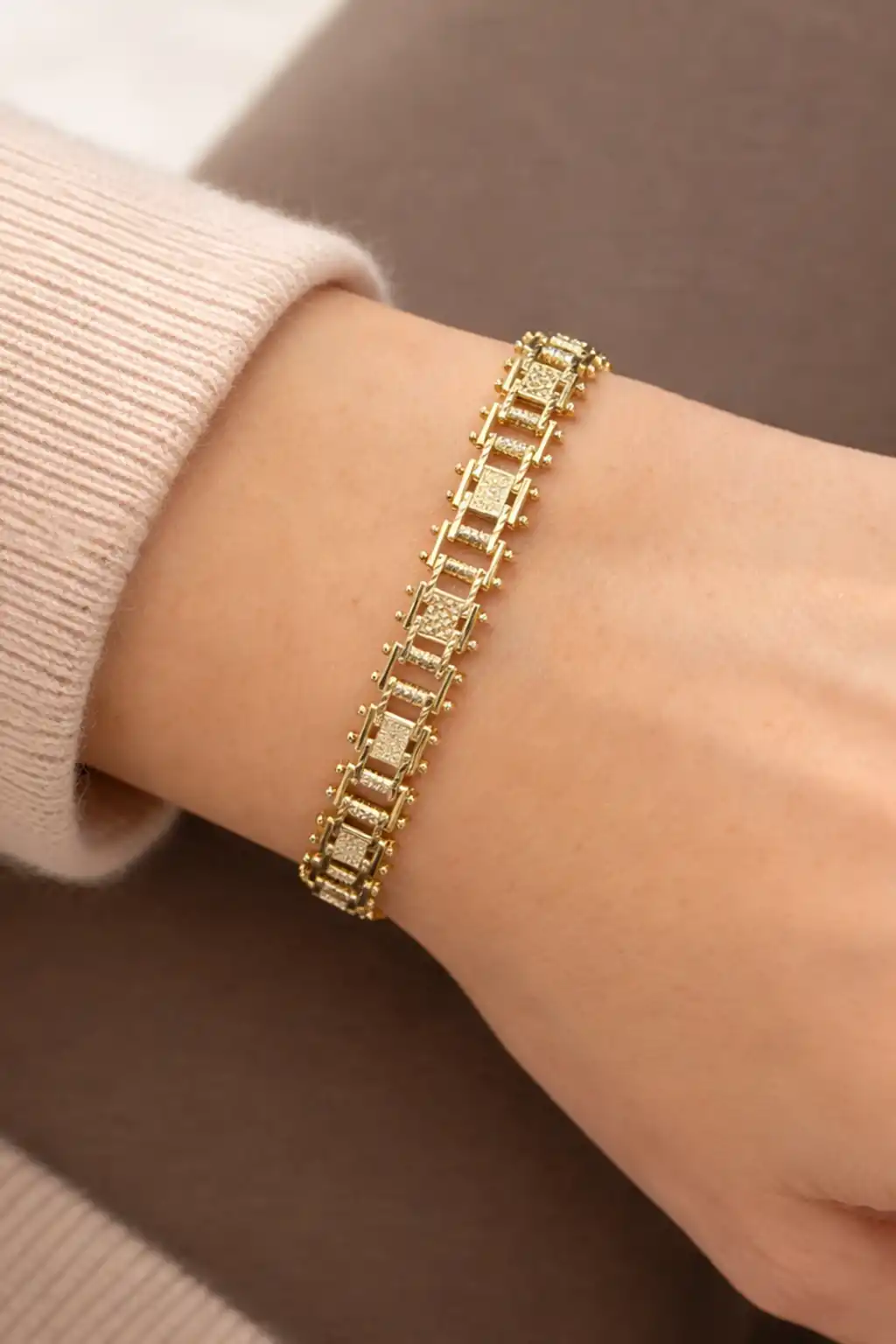 Altın Renk Taş Detaylı Çelik Xupıng VİP Bileklik