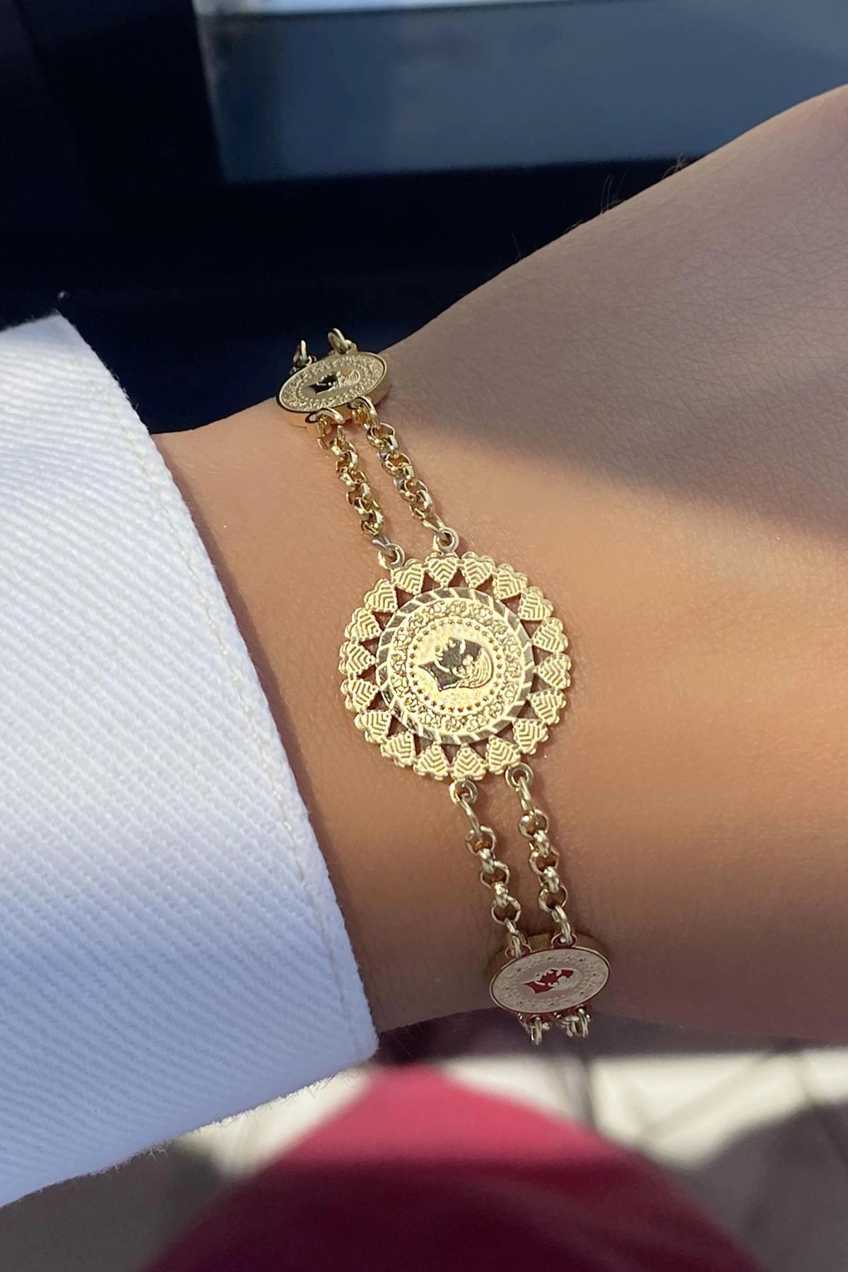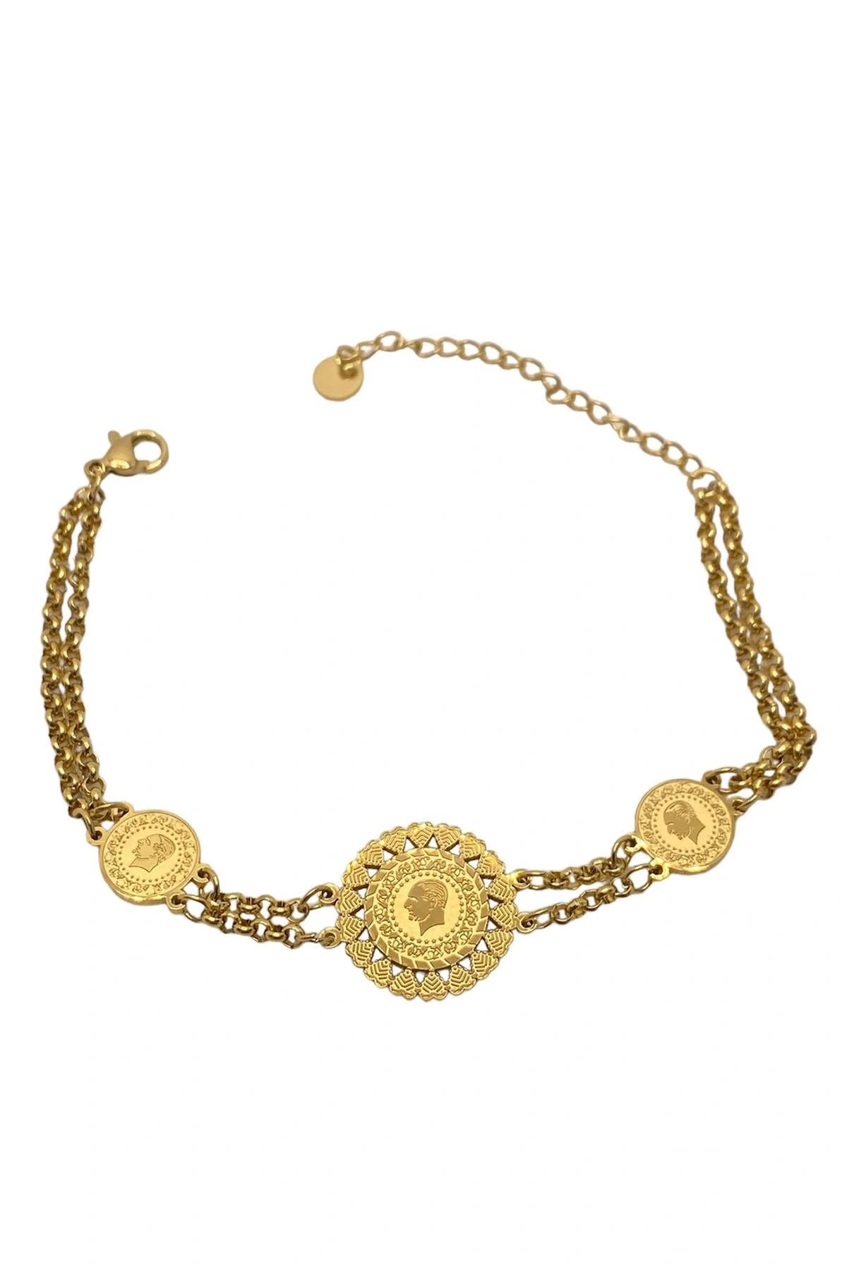 Altın Renk Çeyrek Figürlü Çelik Bileklik