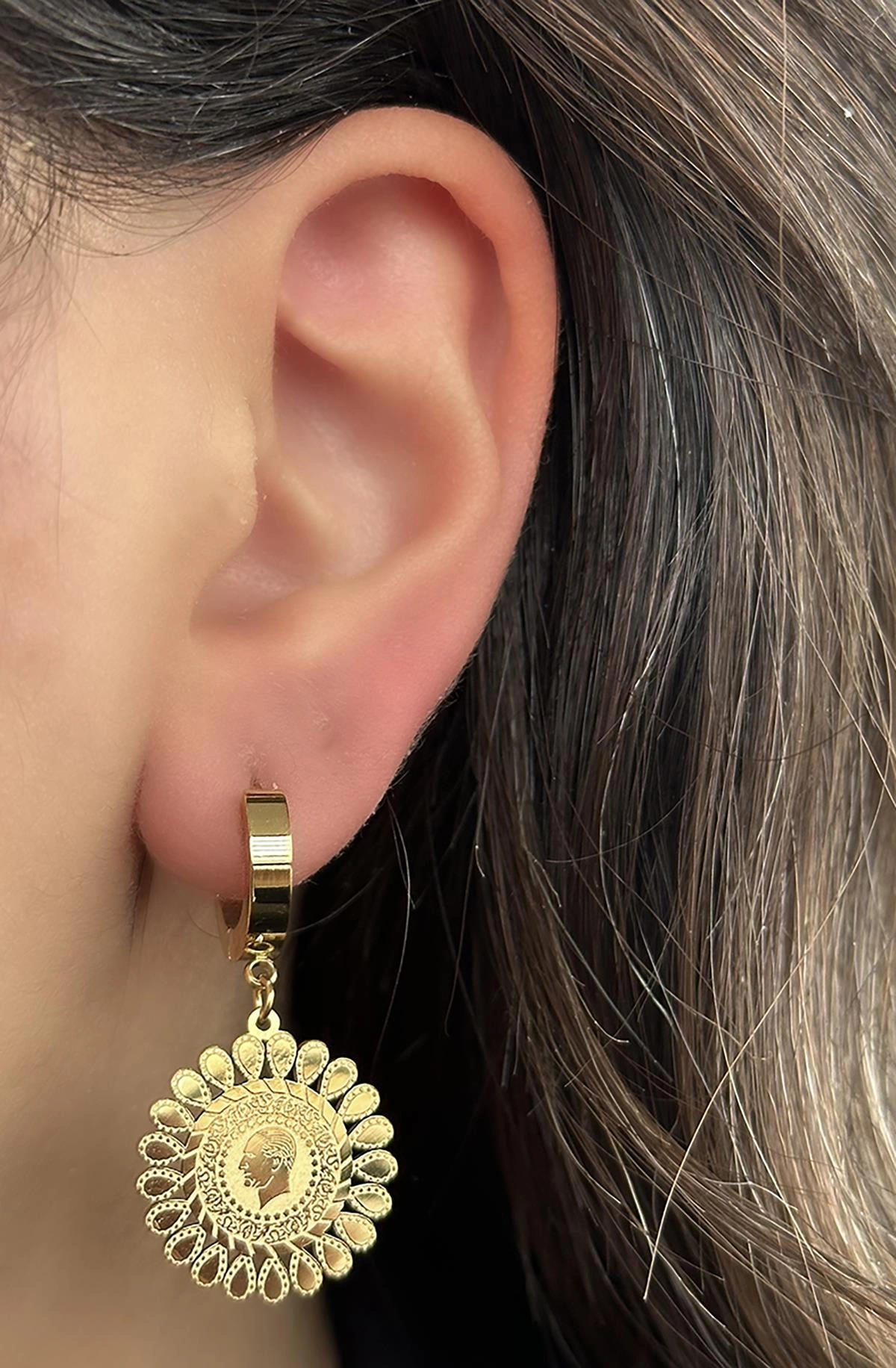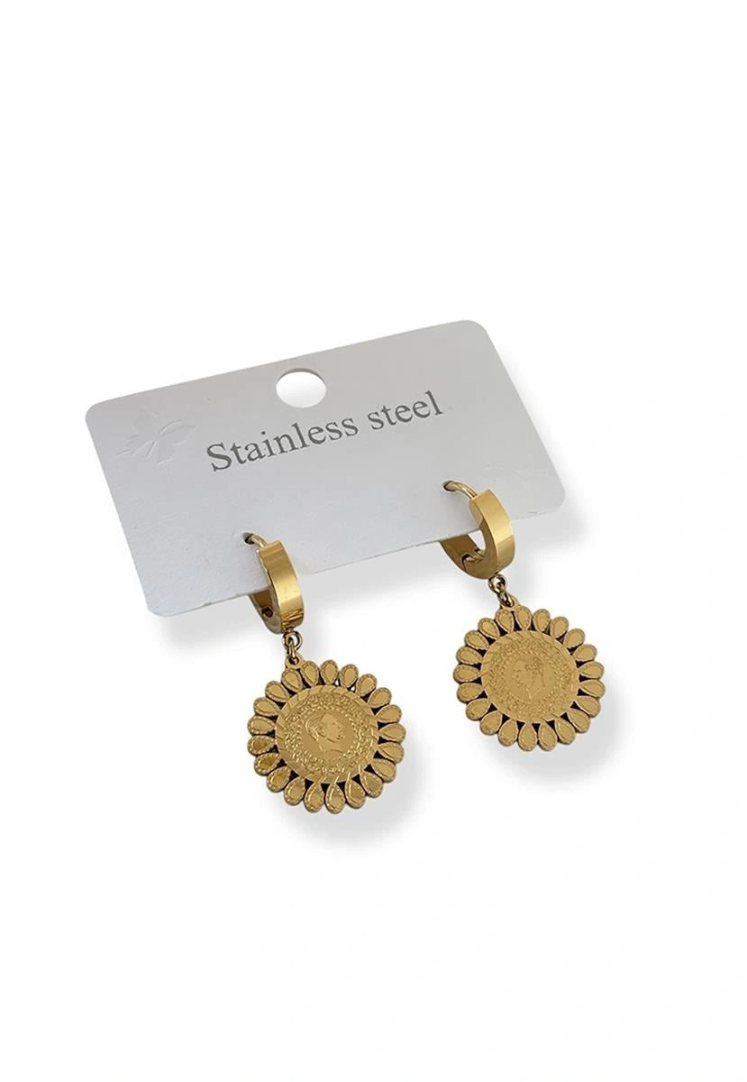 Altın Renk Çeyrek Figürlü Çelik Küpe (Çift)