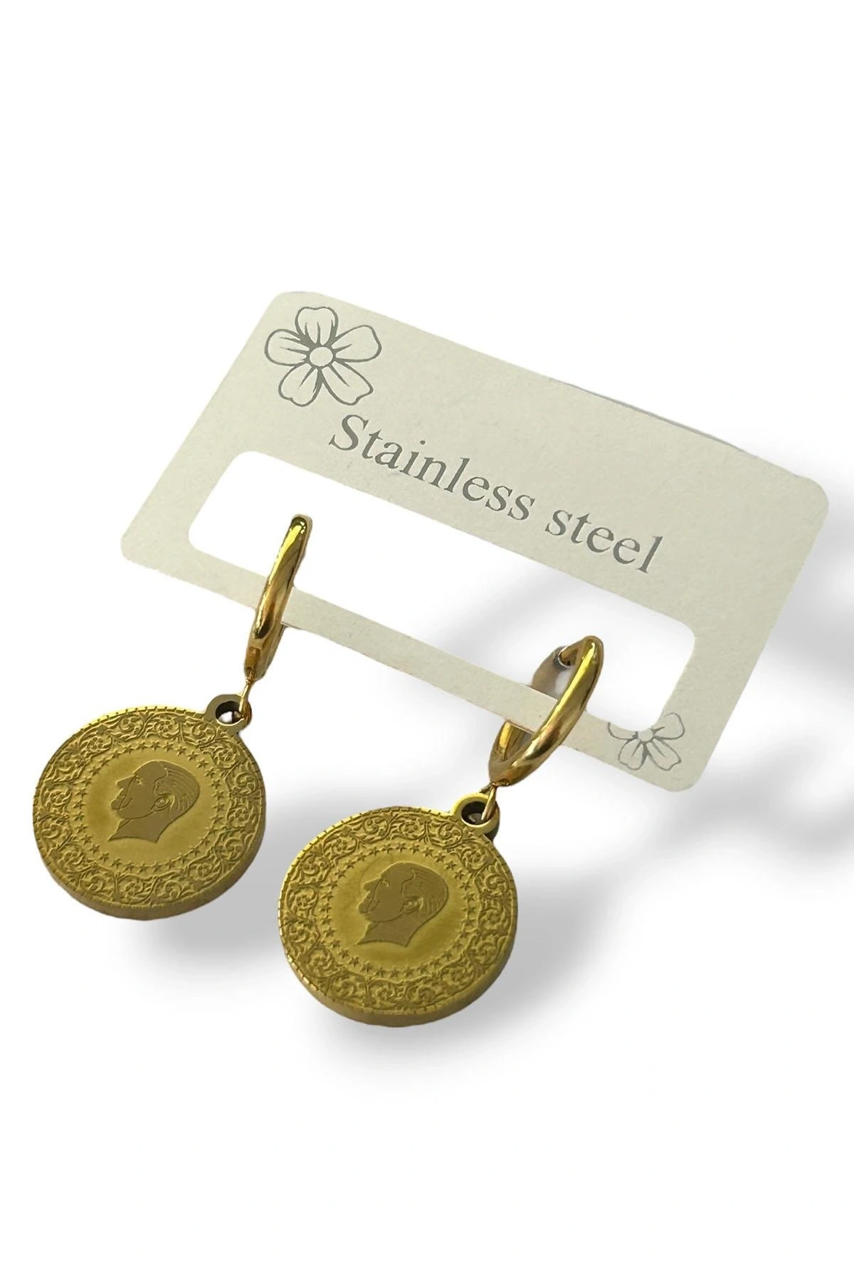 Altın Renk Çeyrek Figürlü Çelik Küpe (Çift)