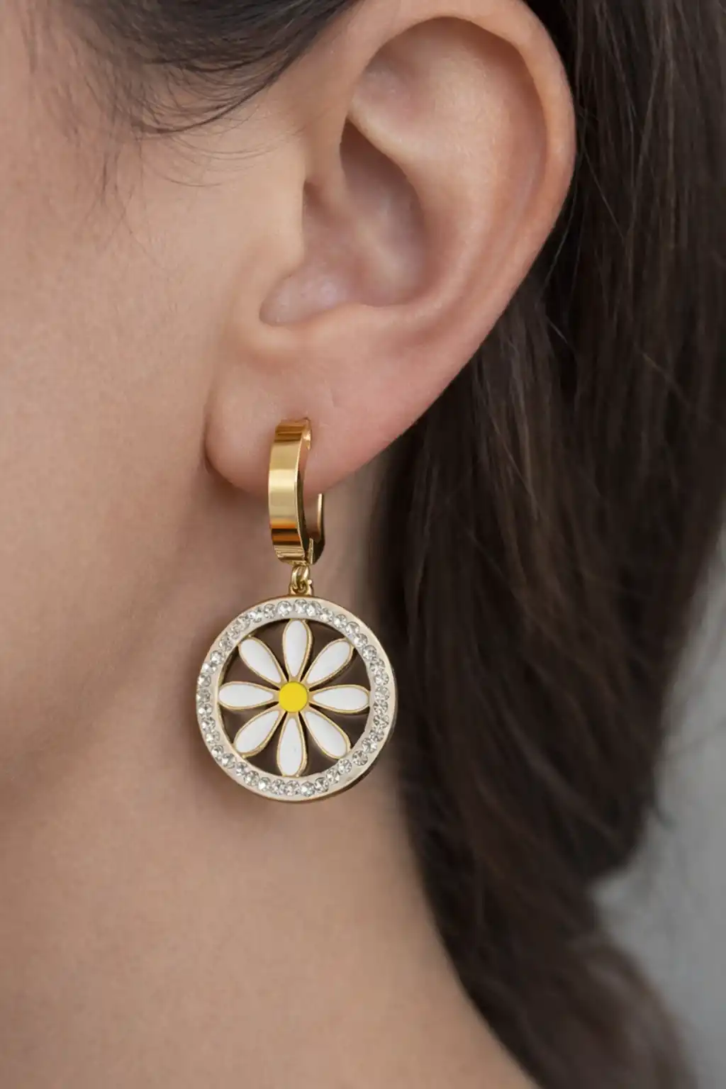 Altın Renk Çiçek Detaylı Çelik Küpe (Çift)