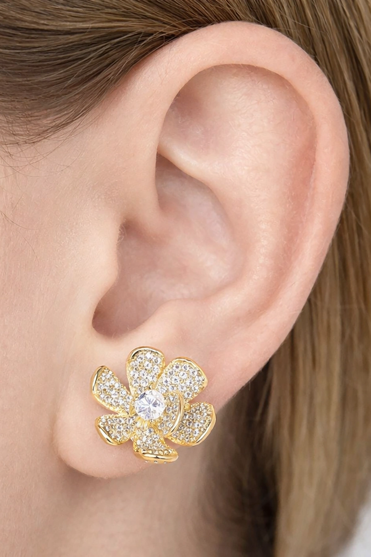 Altın Renk Çiçek Figürlü 14K Altın Kaplama Xuping Küpe (Çift)